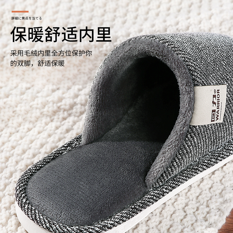 回力棉拖鞋秋冬季男女士居家用室内保暖防滑2023新款冬天情侣亚麻