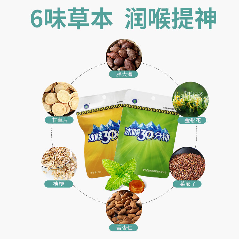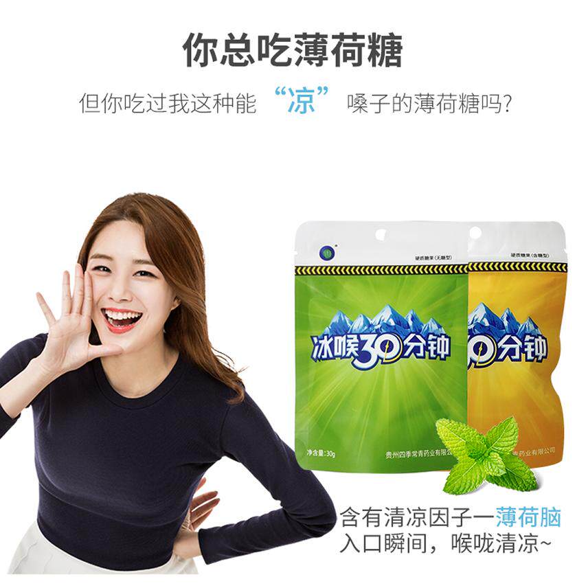 冰喉30分钟含糖无糖30g独立袋装金银花胖大海甘草薄荷冰喉糖正品