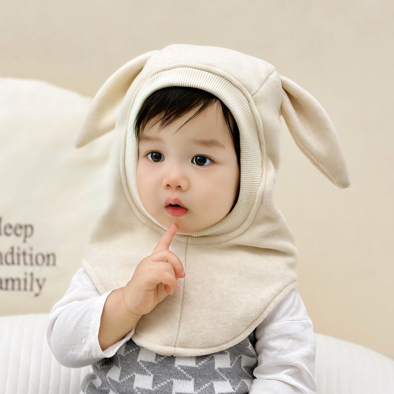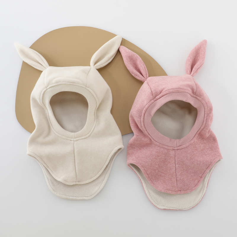 宝宝帽子秋冬款兔耳朵婴儿围脖连体帽冬季男孩女童防风护耳一体帽
