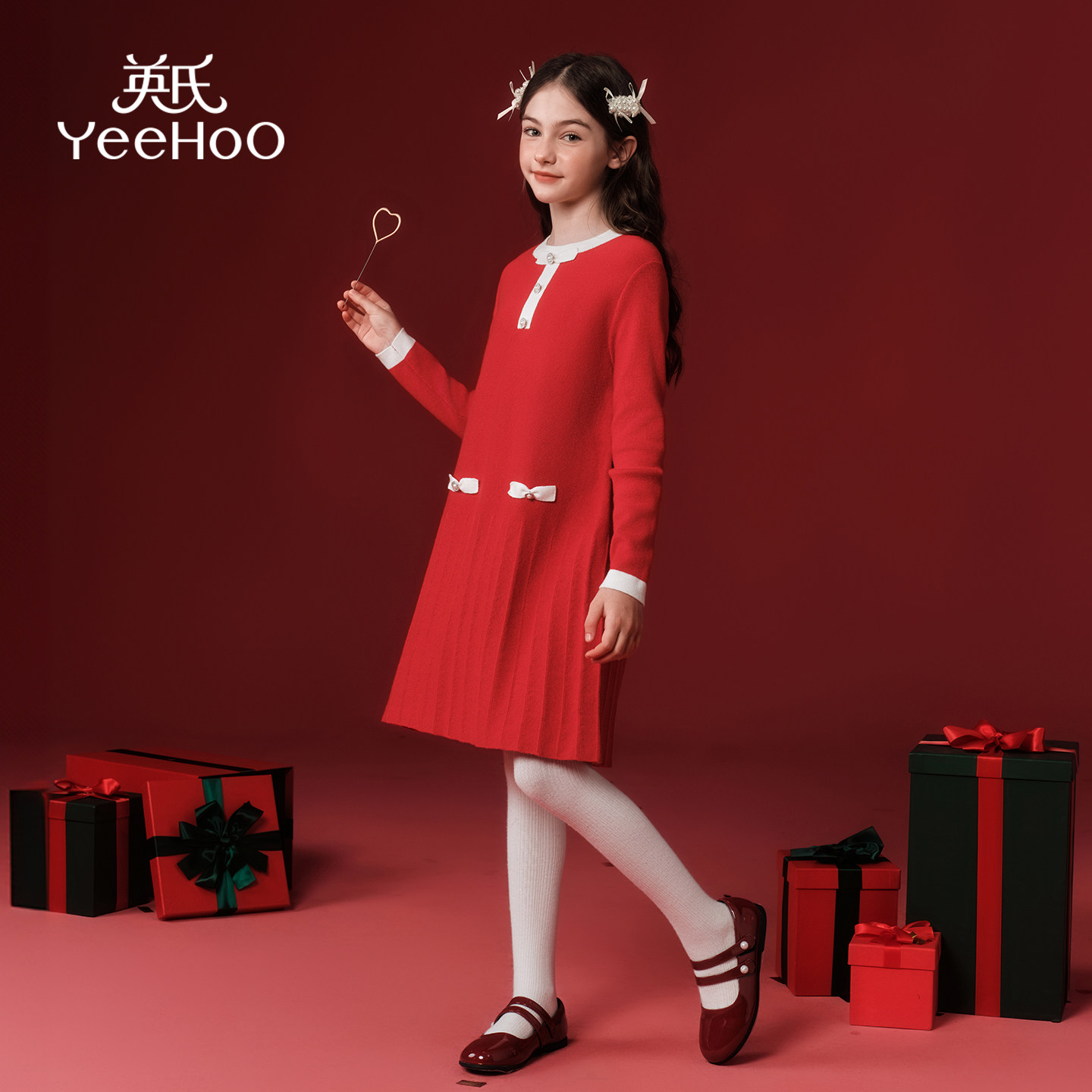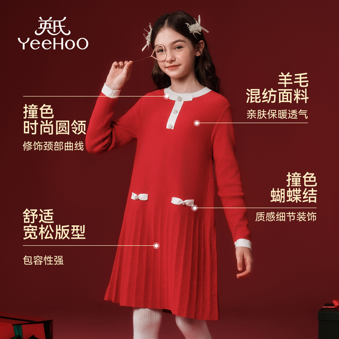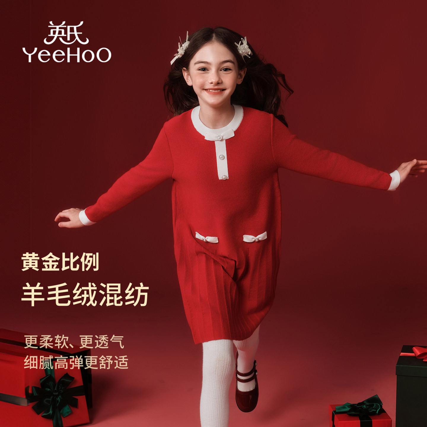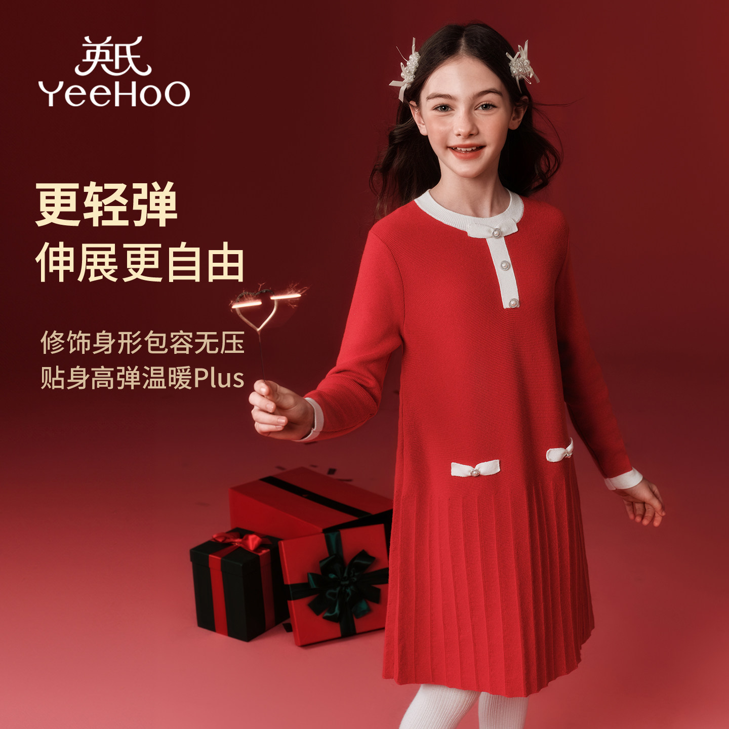 【新年】英氏女童连衣裙2025年秋冬新款儿童中大童针织衫女孩毛衣