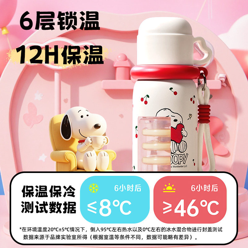 史努比儿童保温杯男女孩小学生上学专用吸管水杯食品级316双饮壶