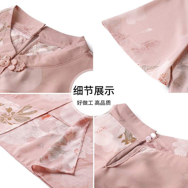 妈妈装2024夏装新款改良旗袍雪纺印花连衣裙时尚高贵中老年女裙子