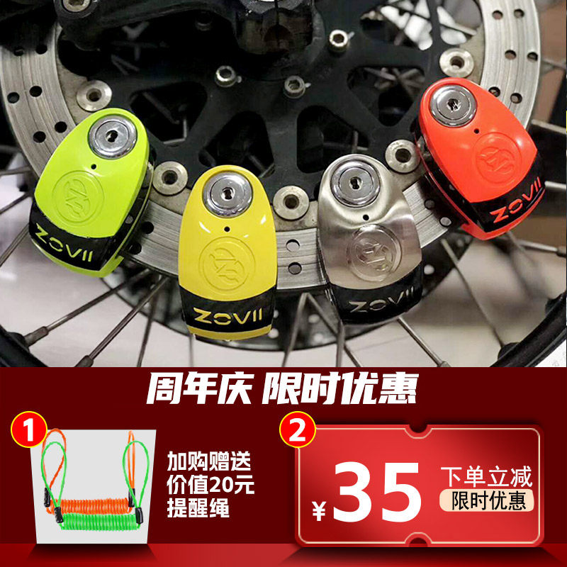 美国ZOVII摩托车锁报警碟刹锁机车电瓶车碟盘防盗锁车锁锁芯防撬
