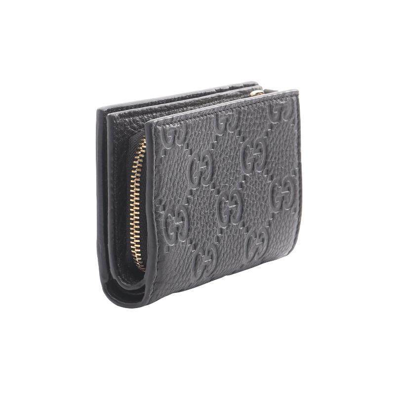 中古Gucci古驰女A级95新Bi-fold wallet双折钱包牛皮短钱包黑色