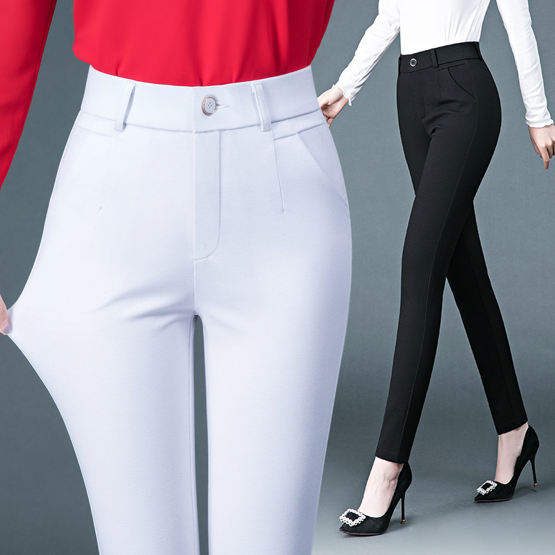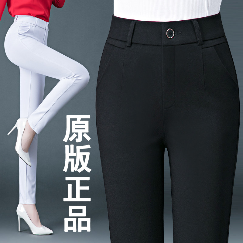 紧身妈妈白色裤子高腰大码弹力修身中年女裤春小脚休闲九分裤翘臀