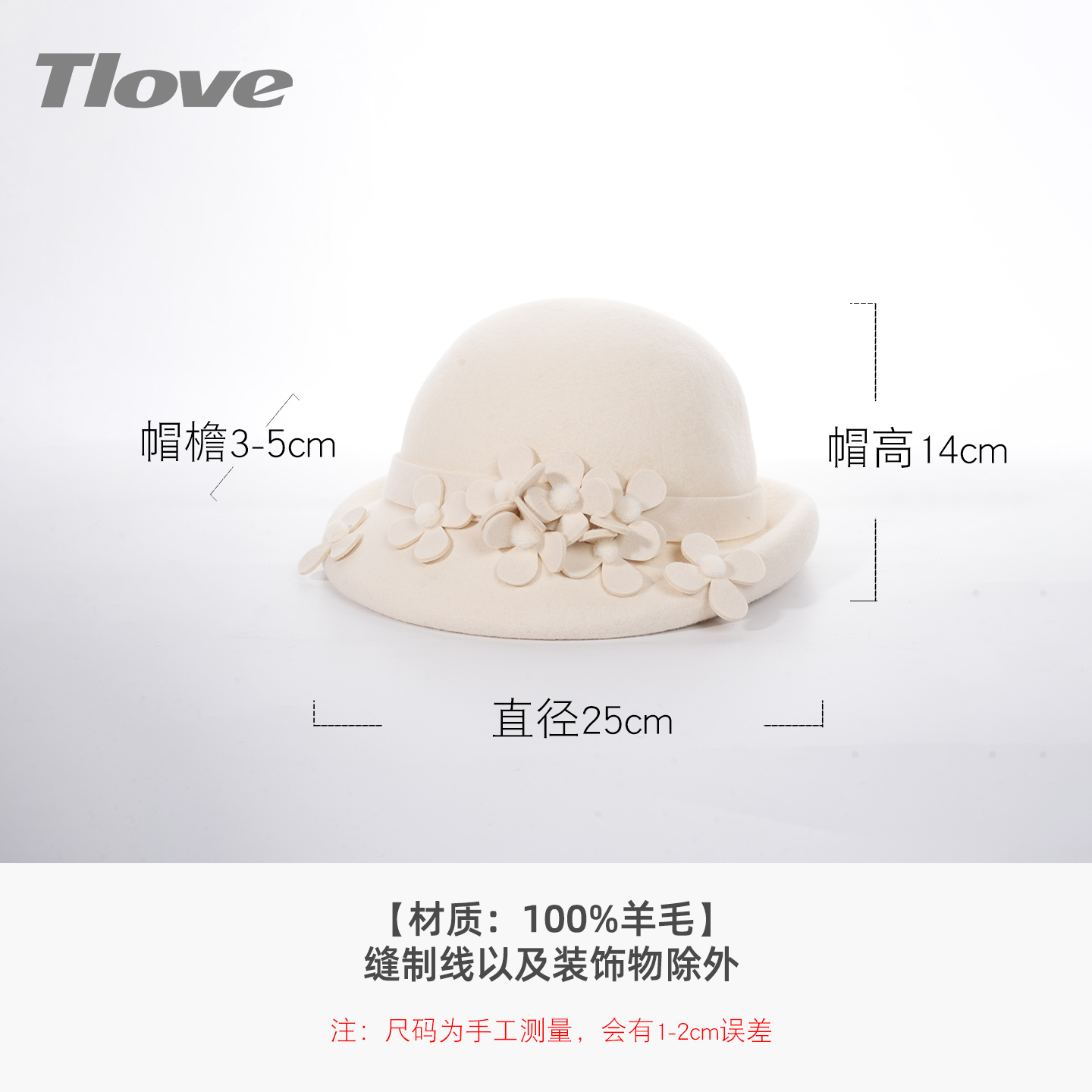 9916优雅洋气秋冬季新款羊毛帽子女士舒适韩版户外保暖手工花礼帽