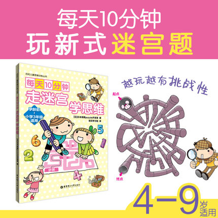每天10分钟,走迷宫,学思维 日本儿童少儿幼儿园益智游戏迷宫书图画捉迷藏专注力训练趣味大脑开发阶梯数学教程
