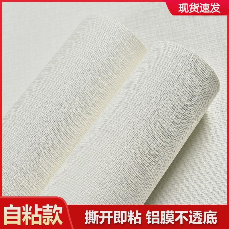 墙纸自粘防水防潮可擦简约纯色客厅卧室家用亚麻布纹素色壁纸墙贴