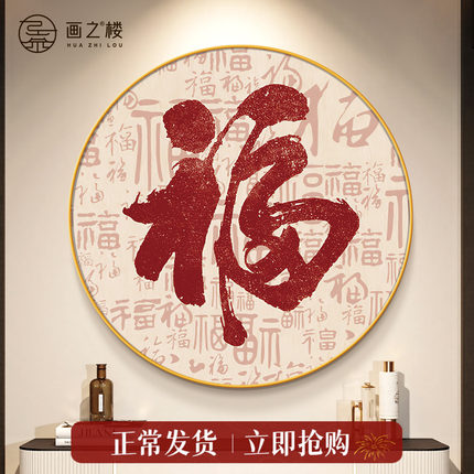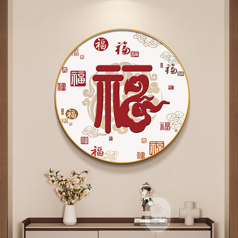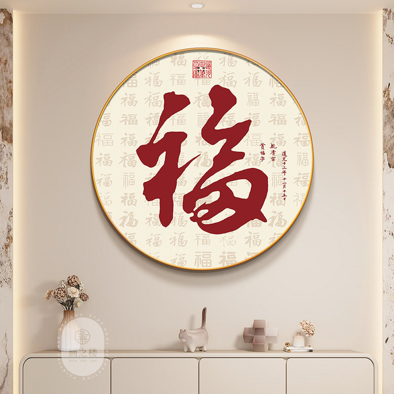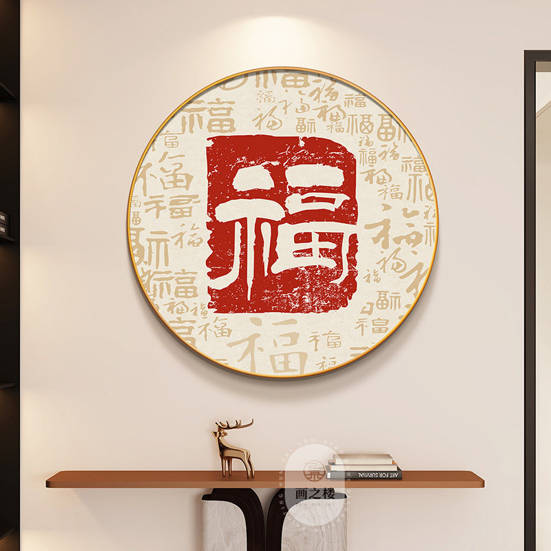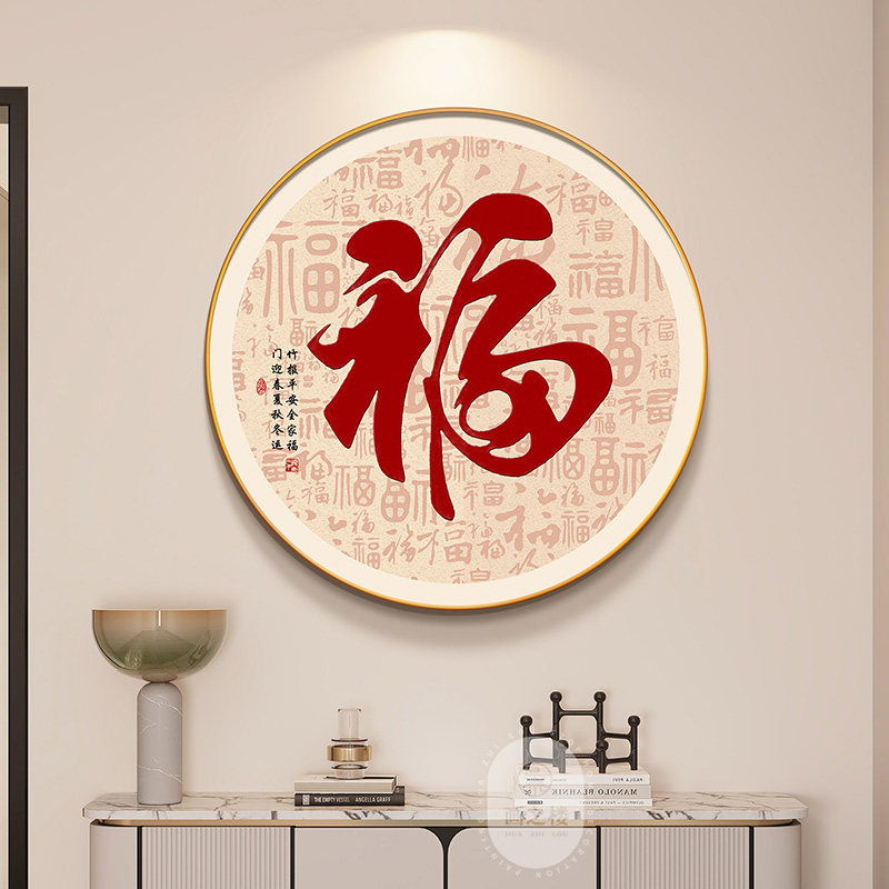 福字圆形玄关装饰画百福图新中式入户门正对墙挂画高级感餐厅壁画