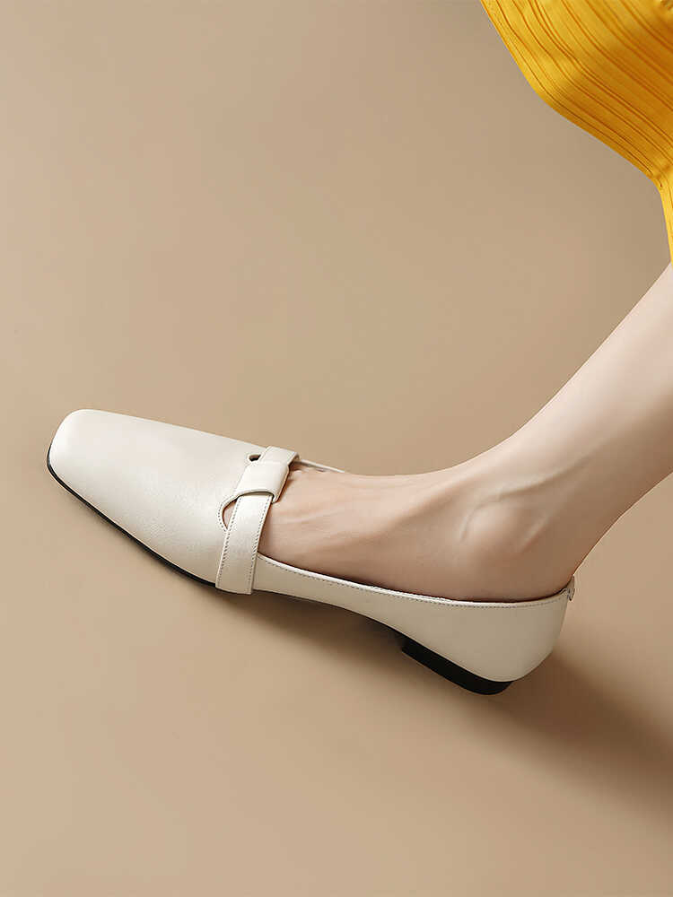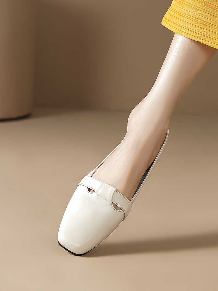 方头平底单鞋女低跟通勤真皮2025春新款一脚蹬百搭软皮软底乐福鞋