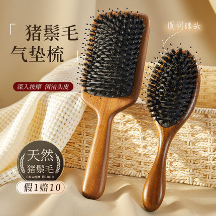 猪鬃毛气垫梳子顺发不打结气囊按摩女士专用长发家用静电檀木梳防