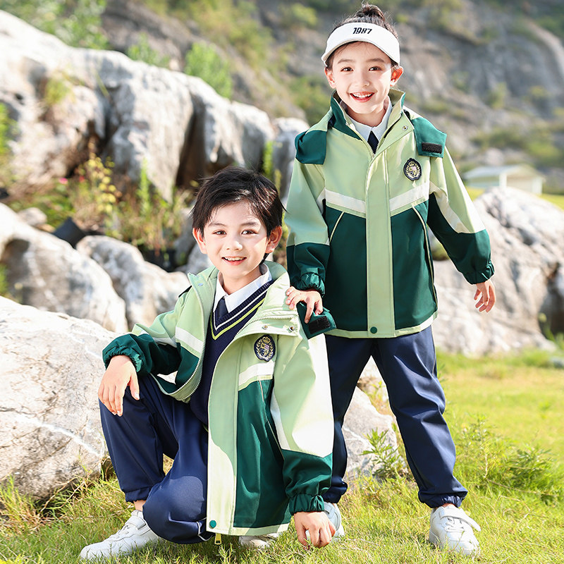 小学生校服秋冬装冲锋衣绿色三件套幼儿园服春秋儿童班服统一定制