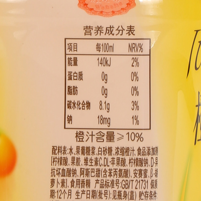 娃哈哈橙汁饮料500ml年货