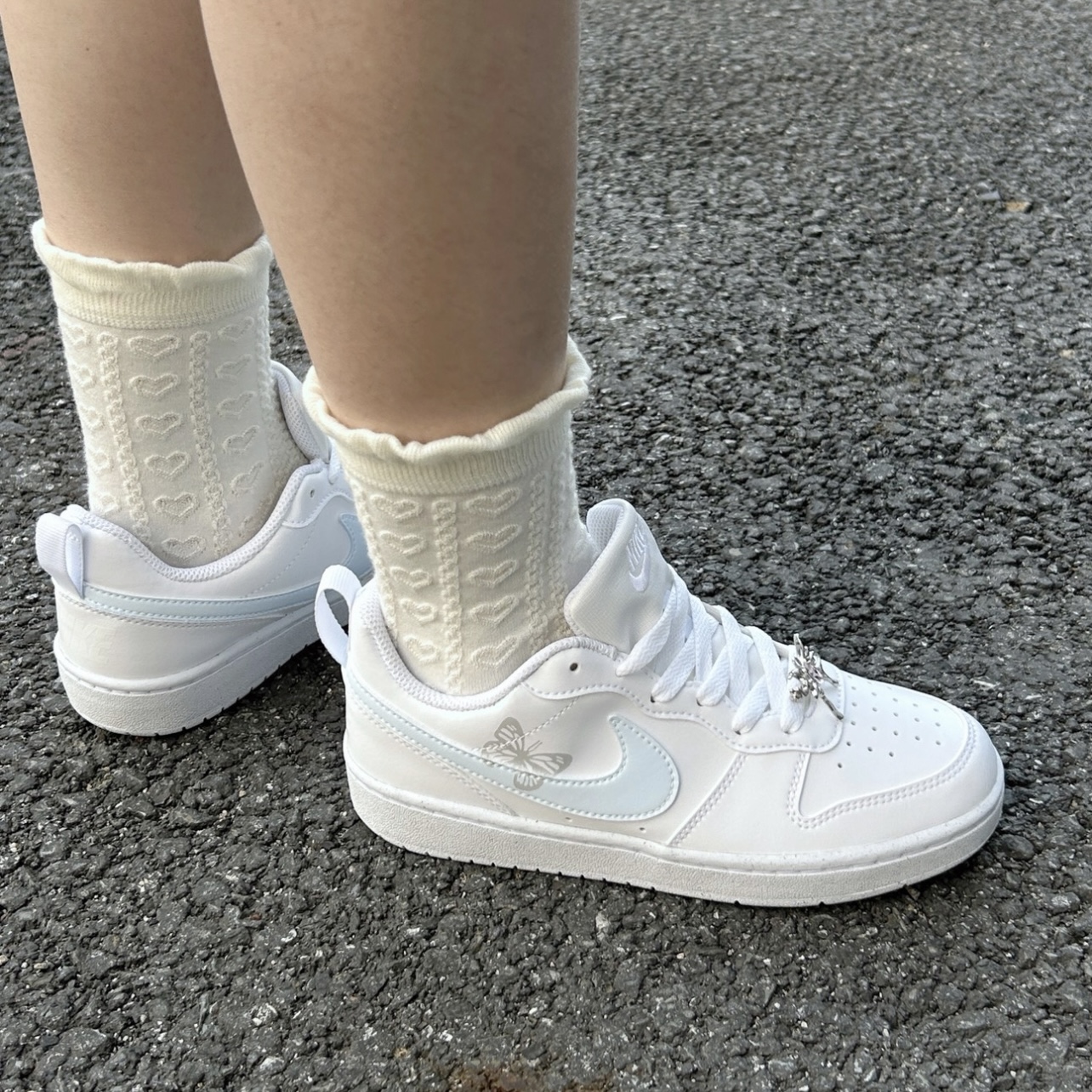 【定制球鞋】 Nike Court Borough蓝银蝴蝶 手绘 耐磨 低帮 板鞋