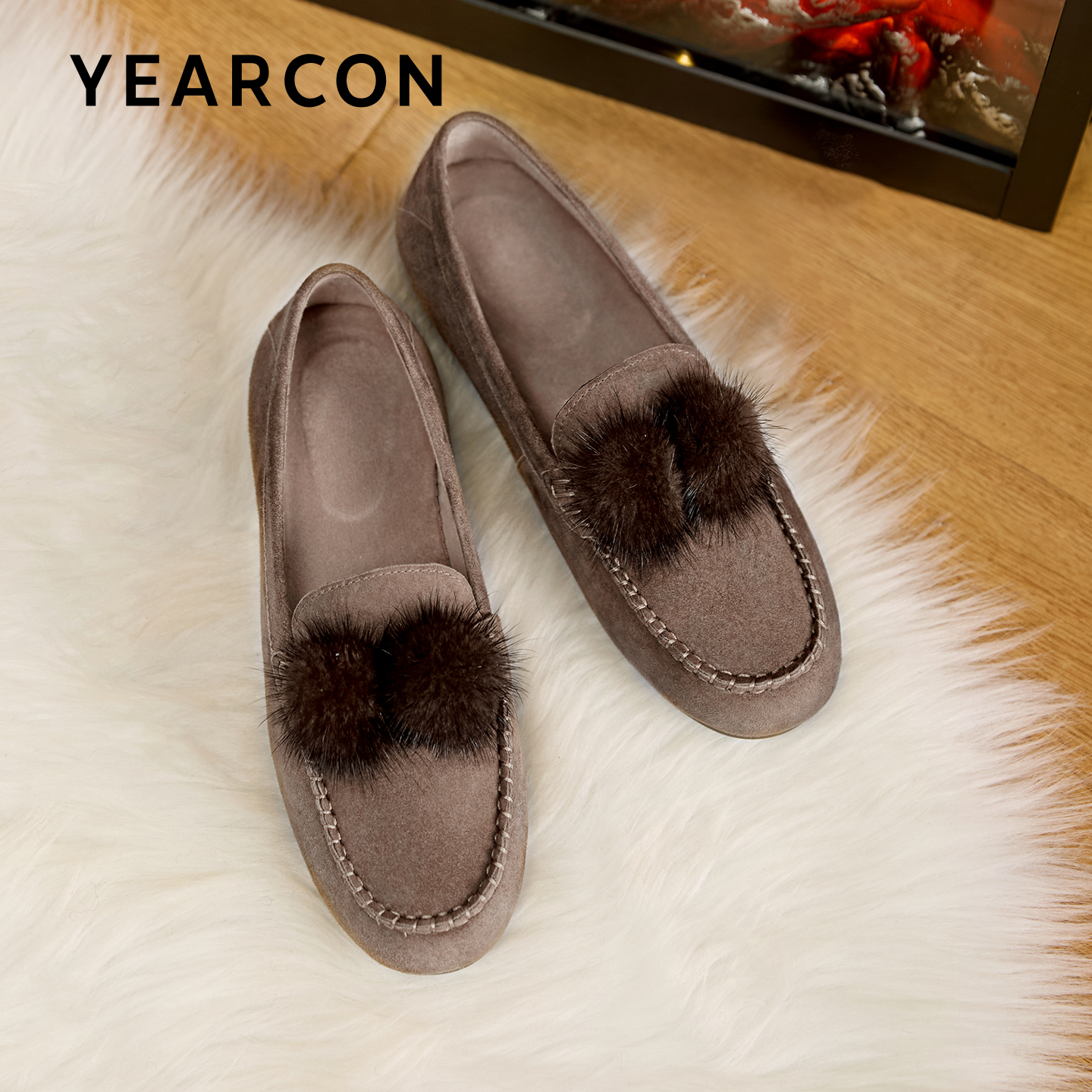 意尔康真皮加绒乐福鞋女2025冬季新款一脚蹬软底毛毛鞋英伦风棉鞋