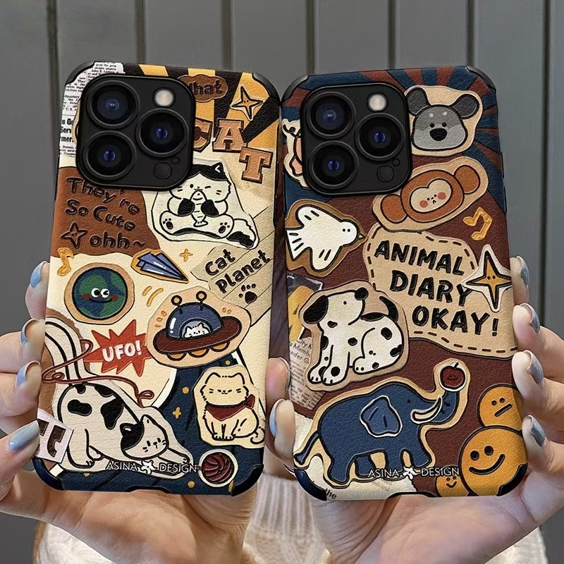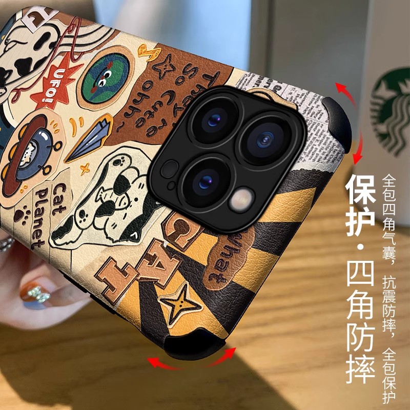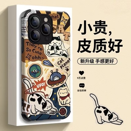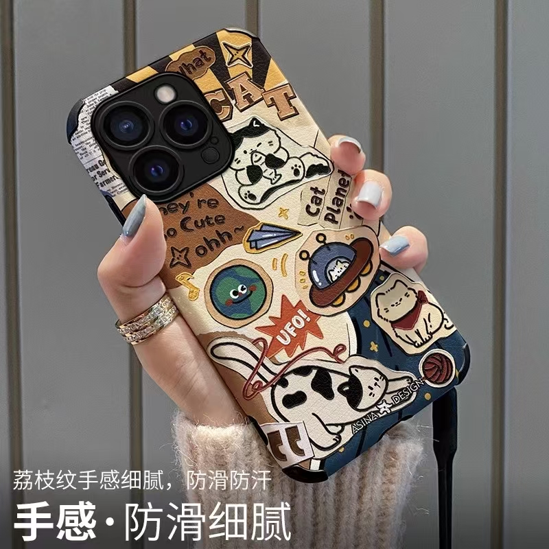 复古拼贴猫咪小羊皮硅胶手机壳适用小米14/13/12新款米15pro卡通红米k80/k70可爱note15情侣turbo3防摔保护套