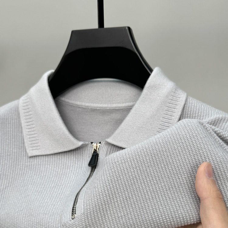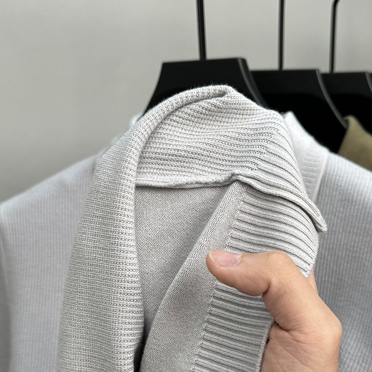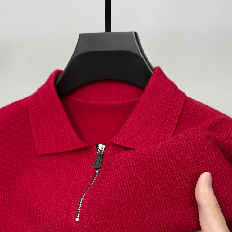 纯色翻领毛衣男春秋季高级感拉链上衣2024新款休闲爸爸针织打底衫
