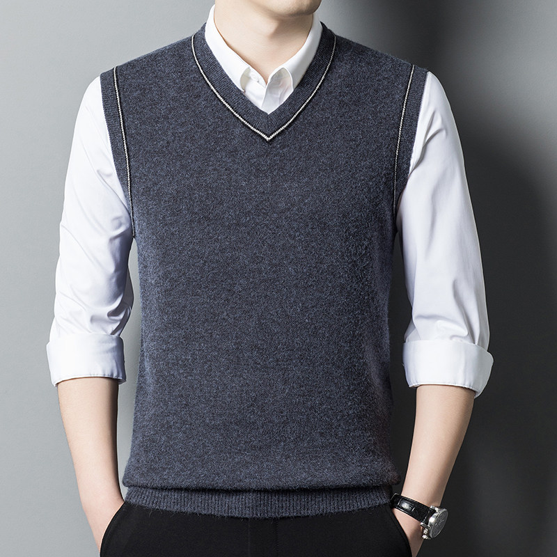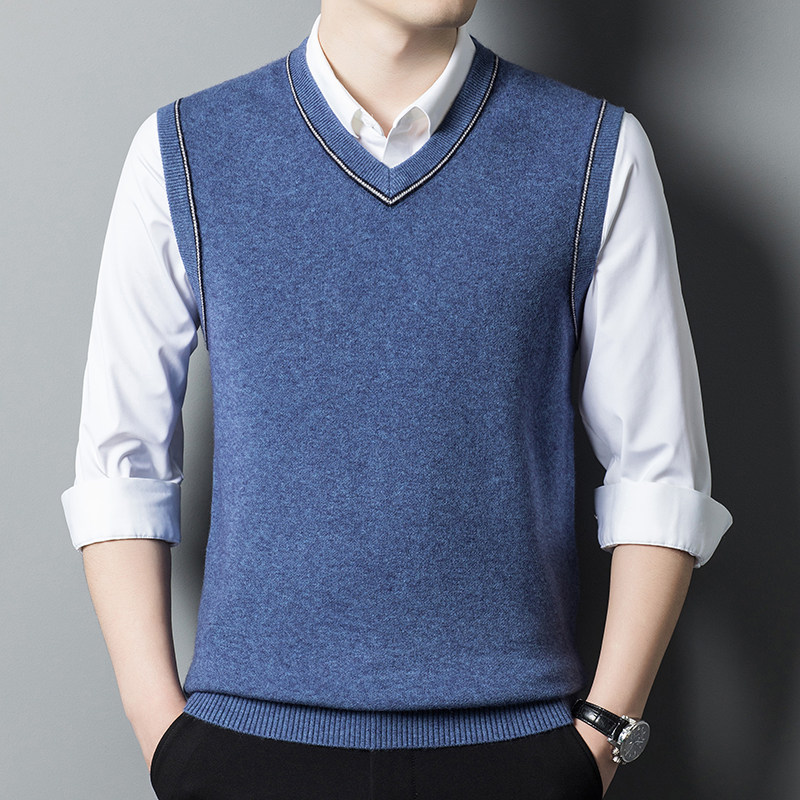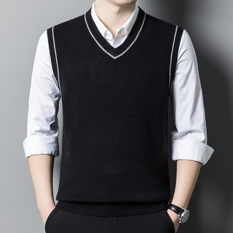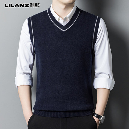 利郎羊绒背心男士秋冬季加厚保暖针织马甲无袖坎肩加大码V领毛衣
