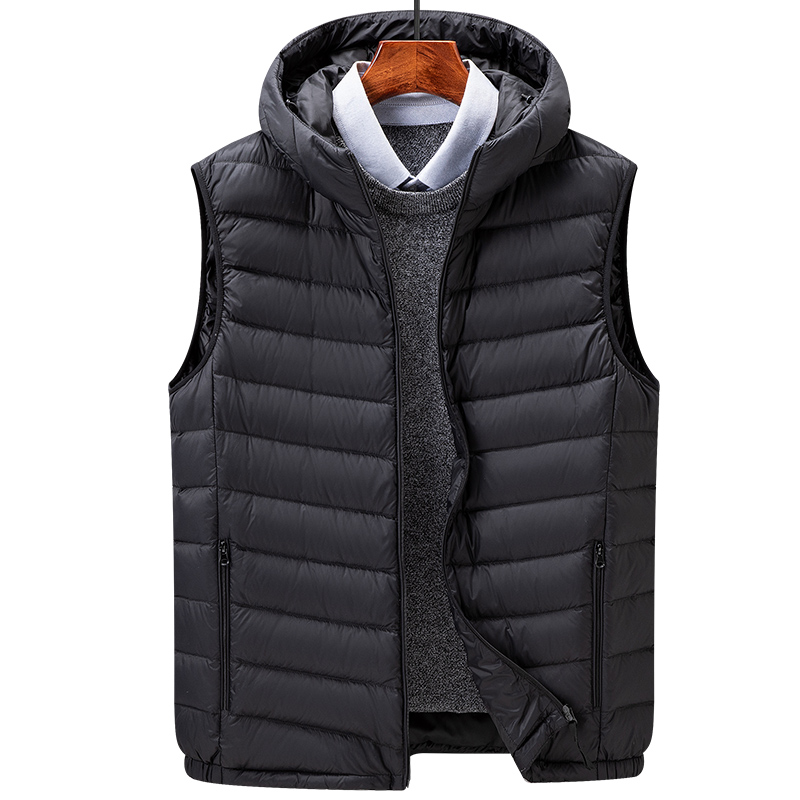 罗蒙男士羽绒马甲2025冬季新款连帽保暖外穿马夹轻薄防寒背心坎肩
