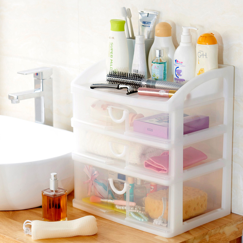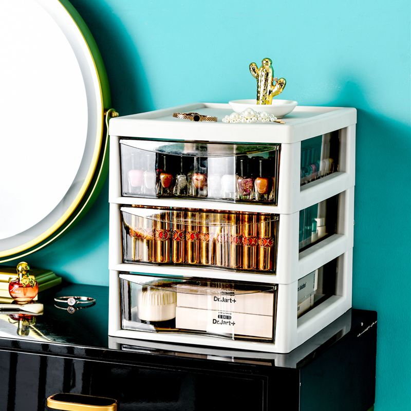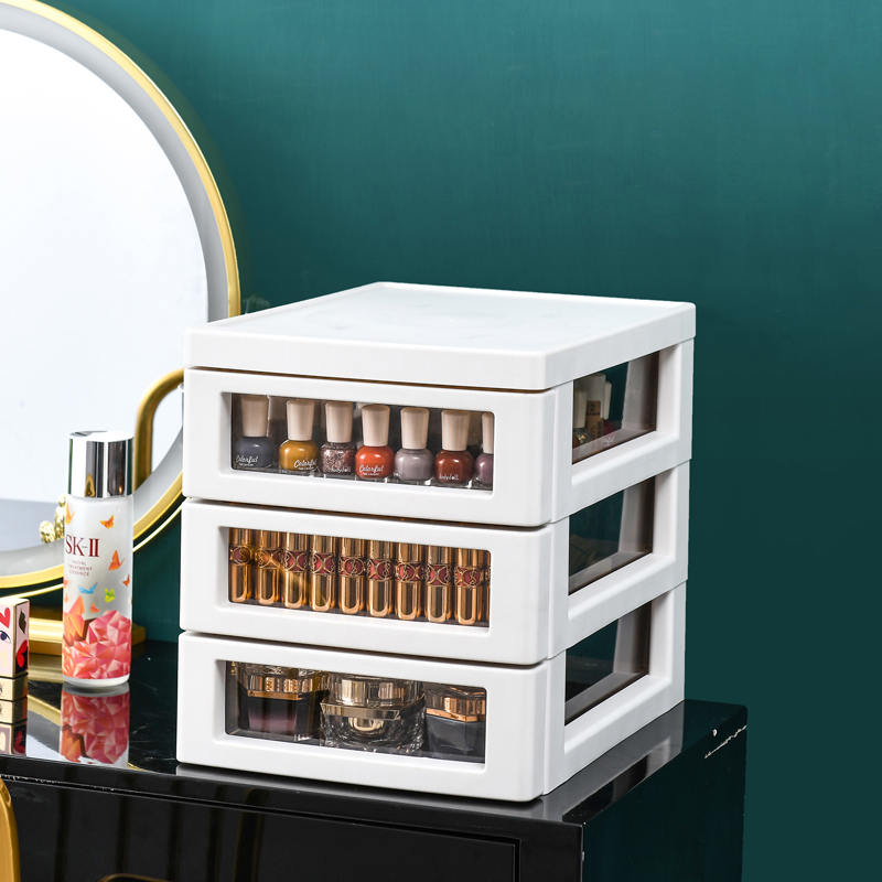 卫生间浴室化妆品甲油胶办公桌面收纳盒a4小抽屉式透明置物架多层