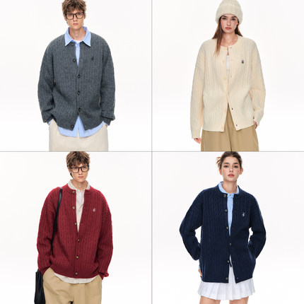 CLIMAX VISION软糯北极绒圆领绞花复古针织开衫毛衣外套男女同款