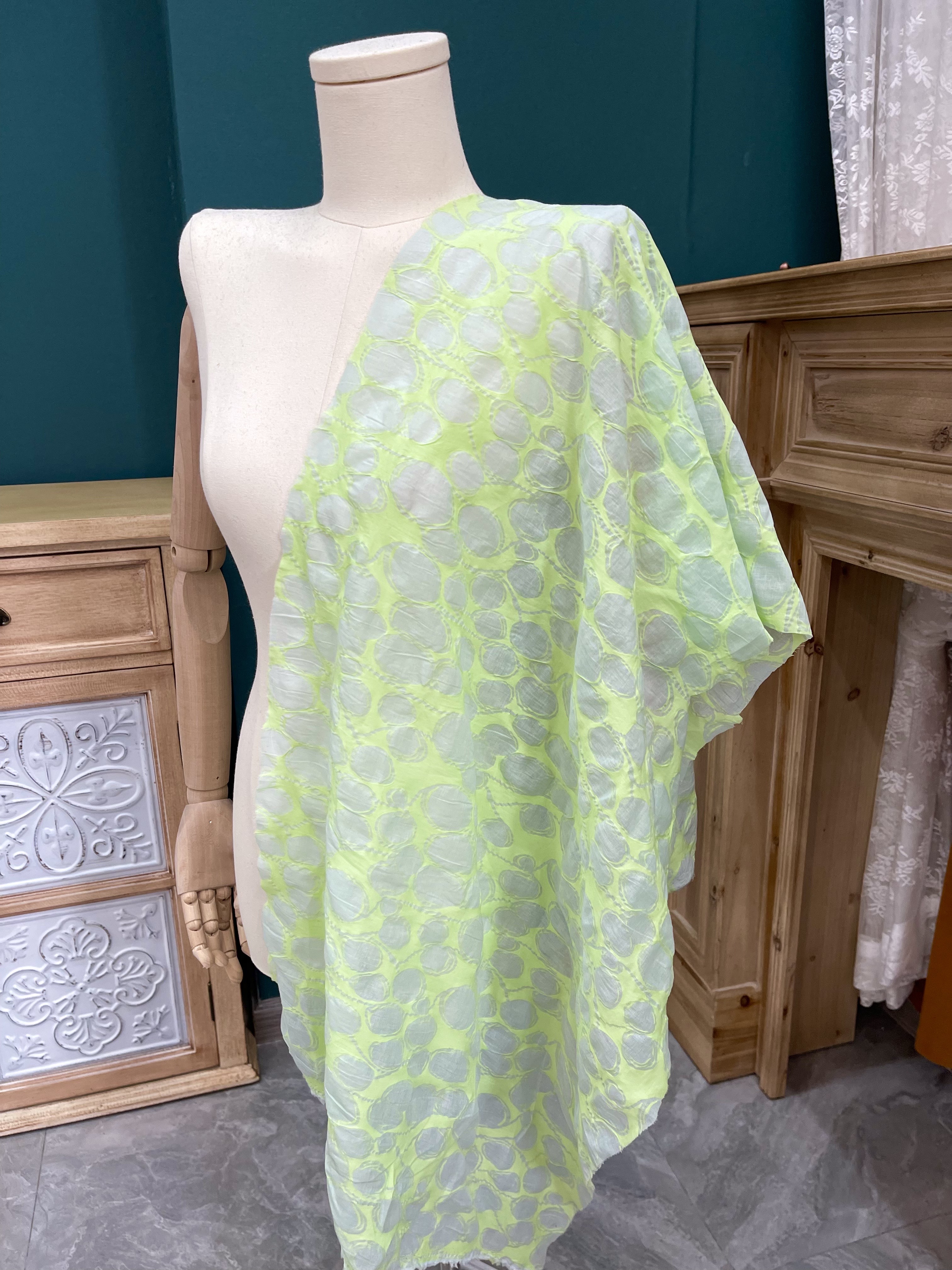 微廓微透 清新绿色凹凸感圈圈盐缩印花高支棉布面料衬衫裙子布料