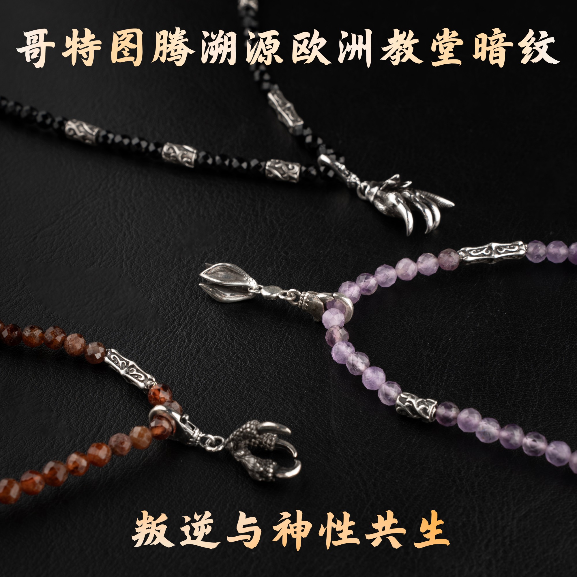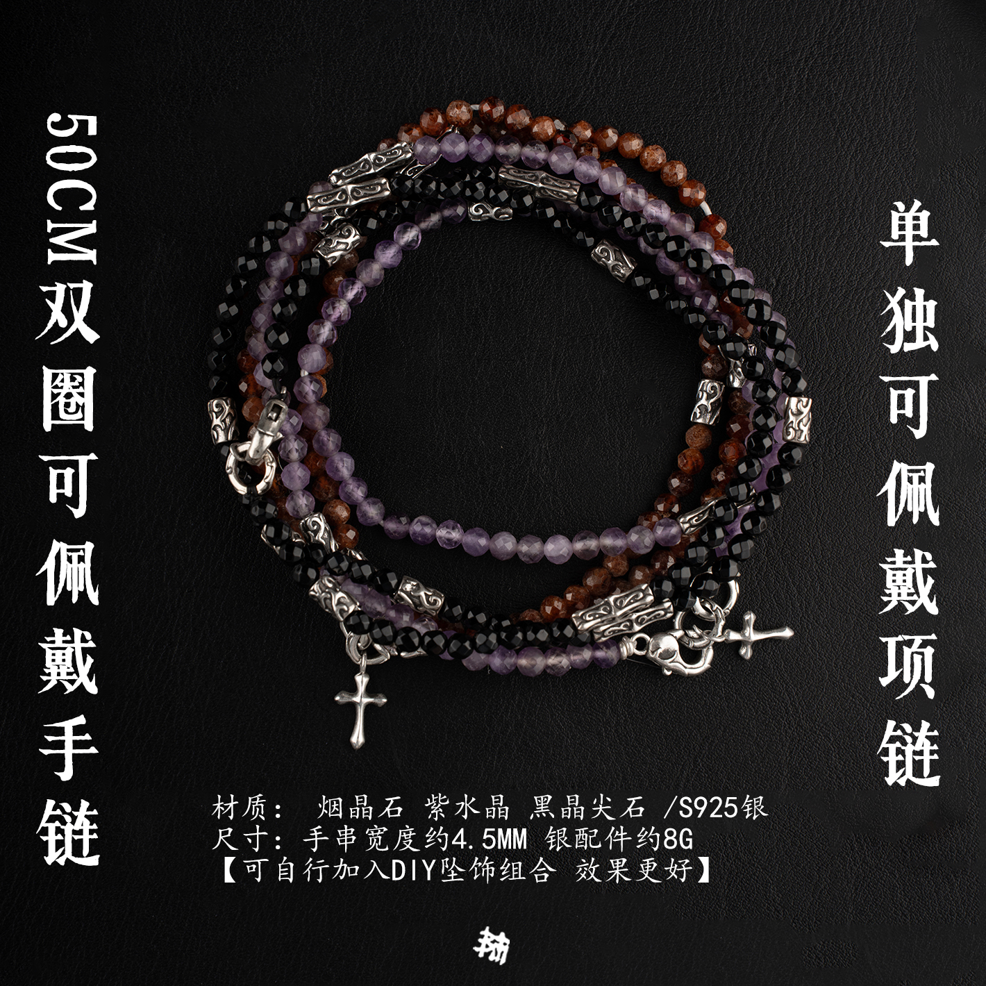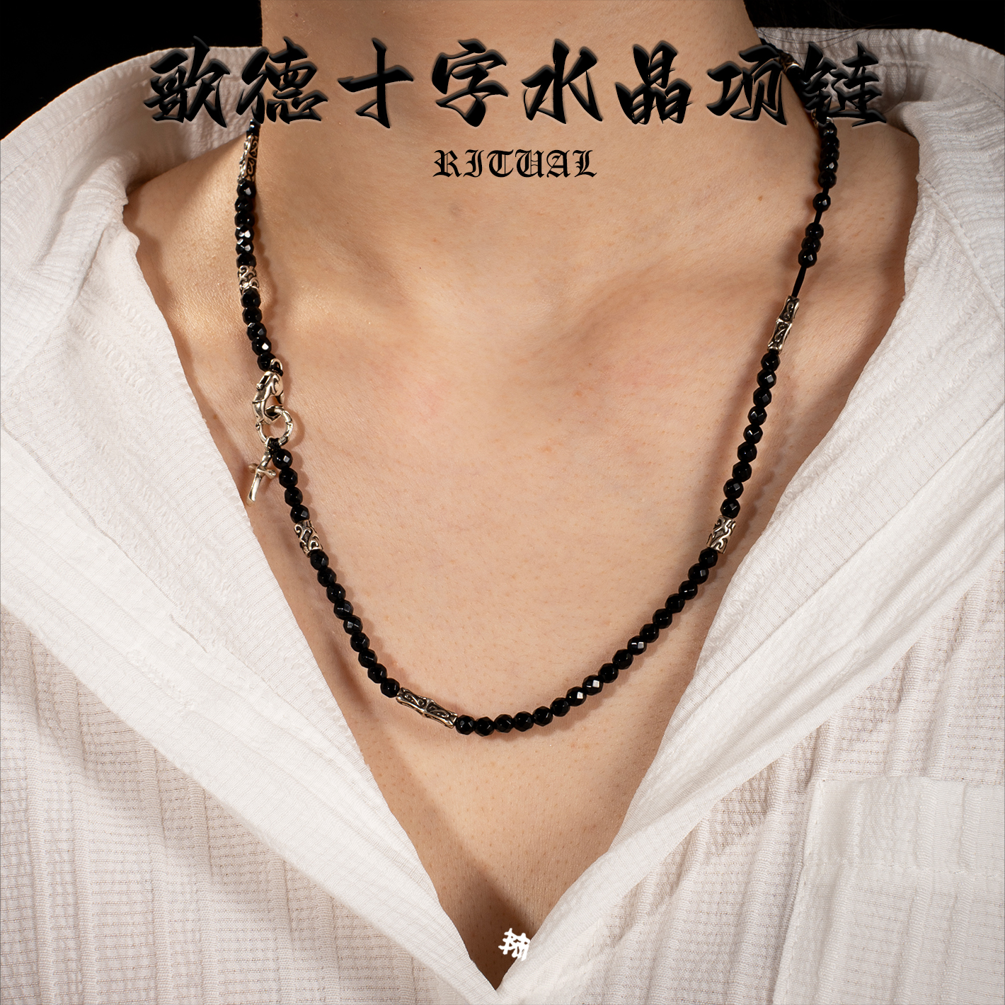 血腥玛丽切面水晶项链手链十字架925银做旧复古个性高级男女小众