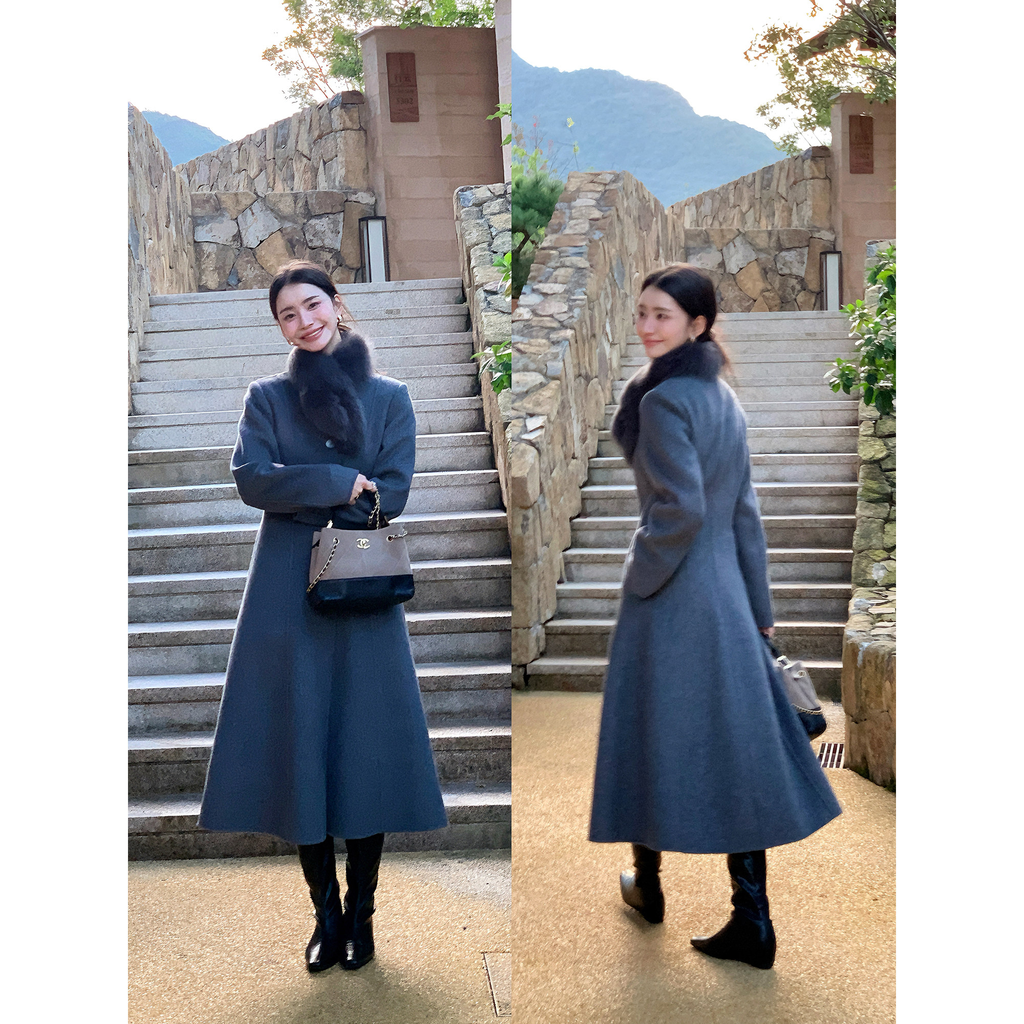 绒冬格调双面呢大衣中长款外套