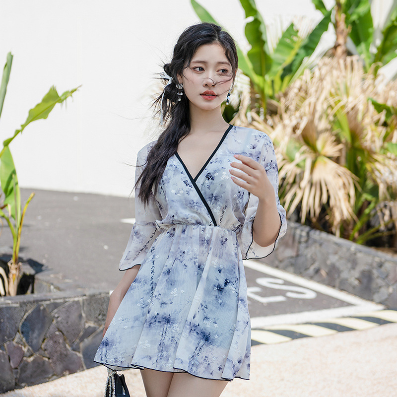 比基尼三件套泳衣女保守小香风小胸聚拢显瘦遮肚性感韩国分体温泉
