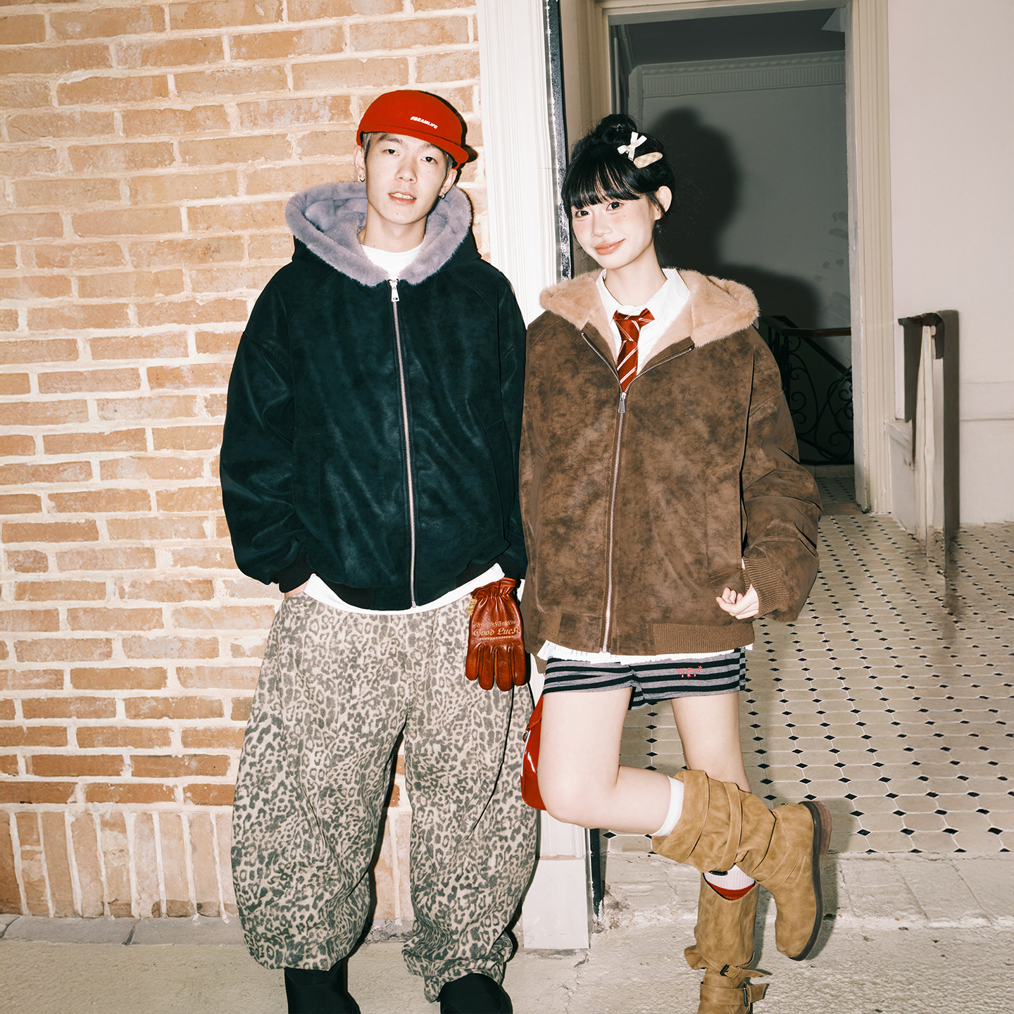 lemanism美式潮流荔枝软皮连帽座山雕棉服男2025新款情侣保暖外套