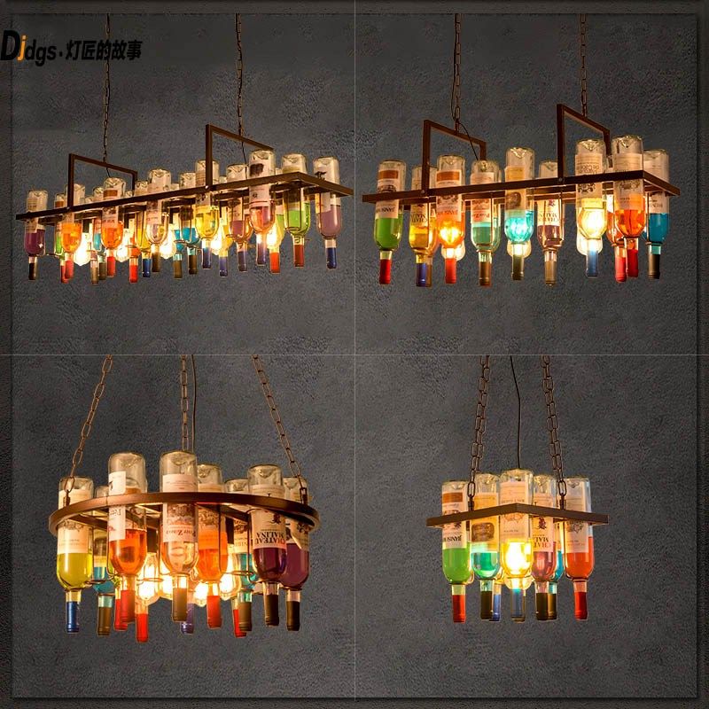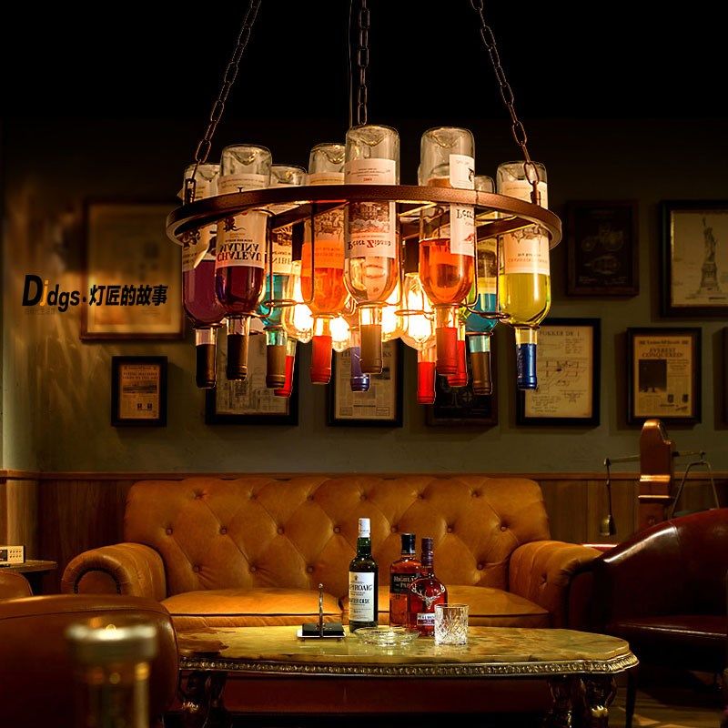 火锅店餐厅酒吧清吧氛围装饰创意个性复古工业风吧台玻璃酒瓶吊灯