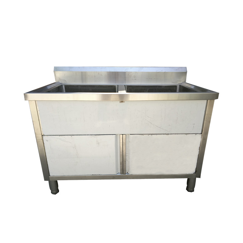 开门双槽不锈钢水池商用酒店厨房洗刷池残食台污碟台水盆定做304