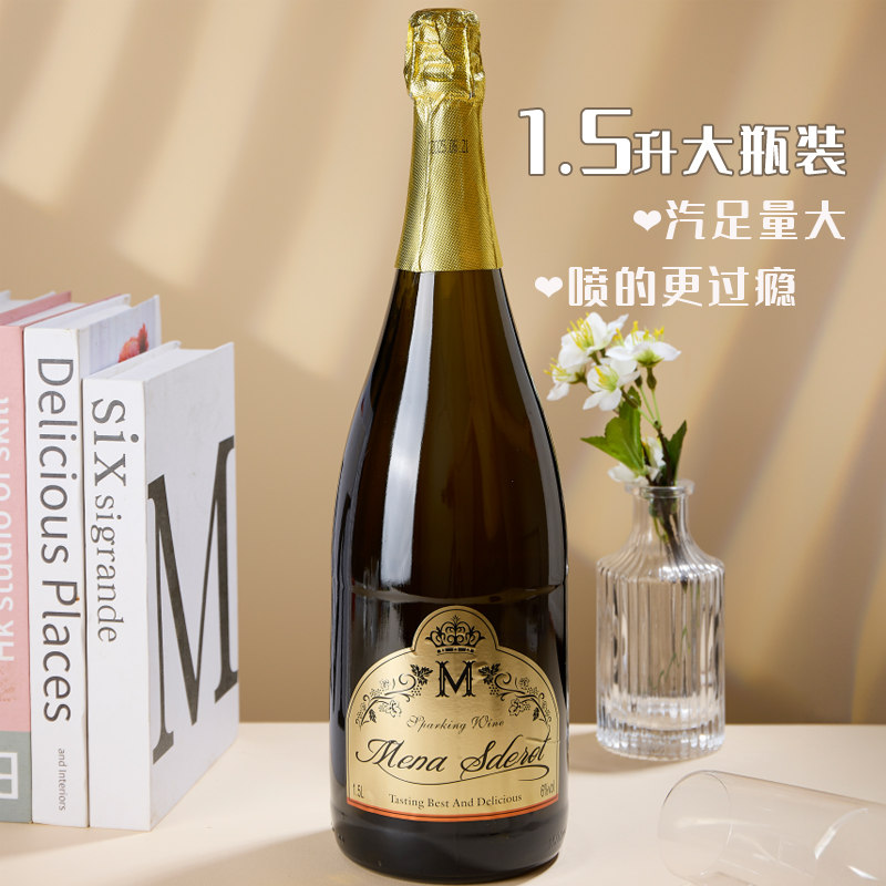 1.5升大瓶装婚礼香槟塔庆祝喷射聚会3斤荔枝气泡酒6度派对比赛