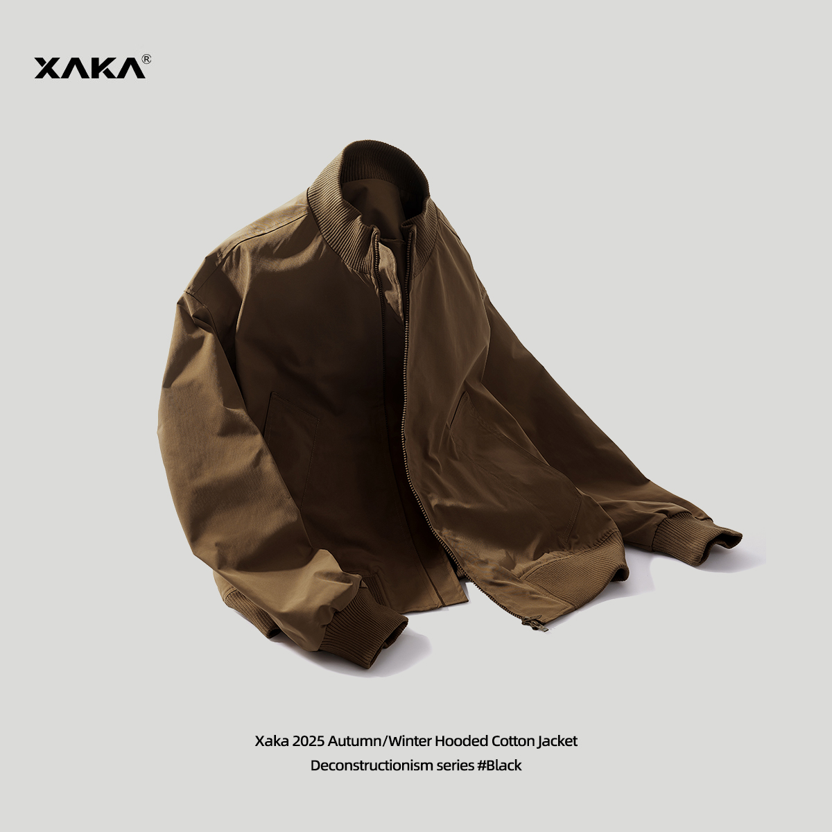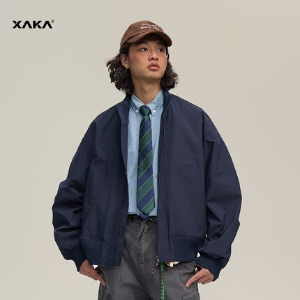 XAKA2025秋季美式短宽阔版bomber外套男女立领飞行员夹克cleanfit