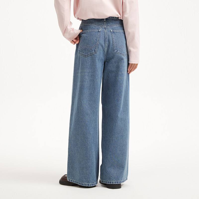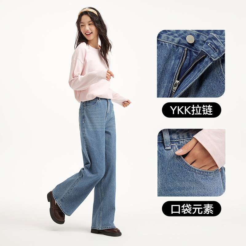 热风女士宽松阔腿裤2026年春季新款时尚直筒显瘦阔腿百搭牛仔裤