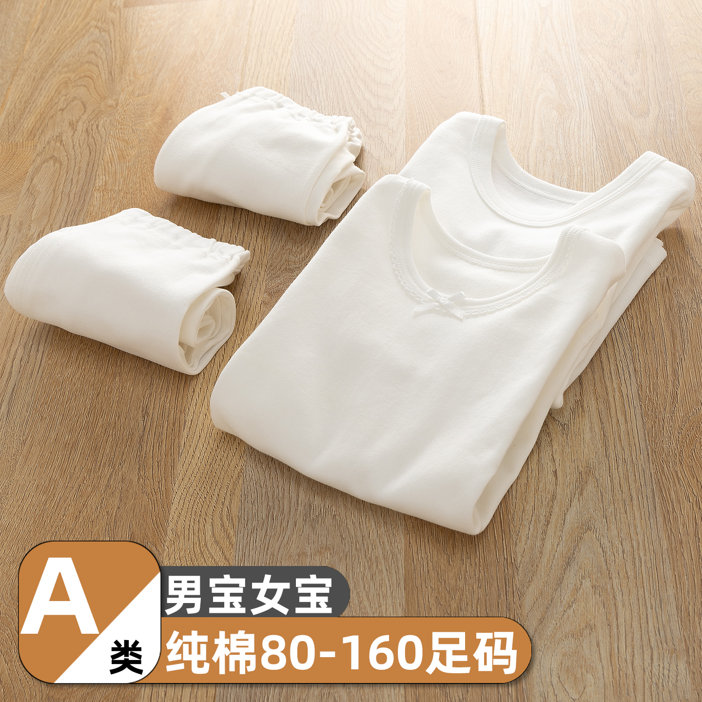 2件装男女童白色纯棉春秋衣秋裤
