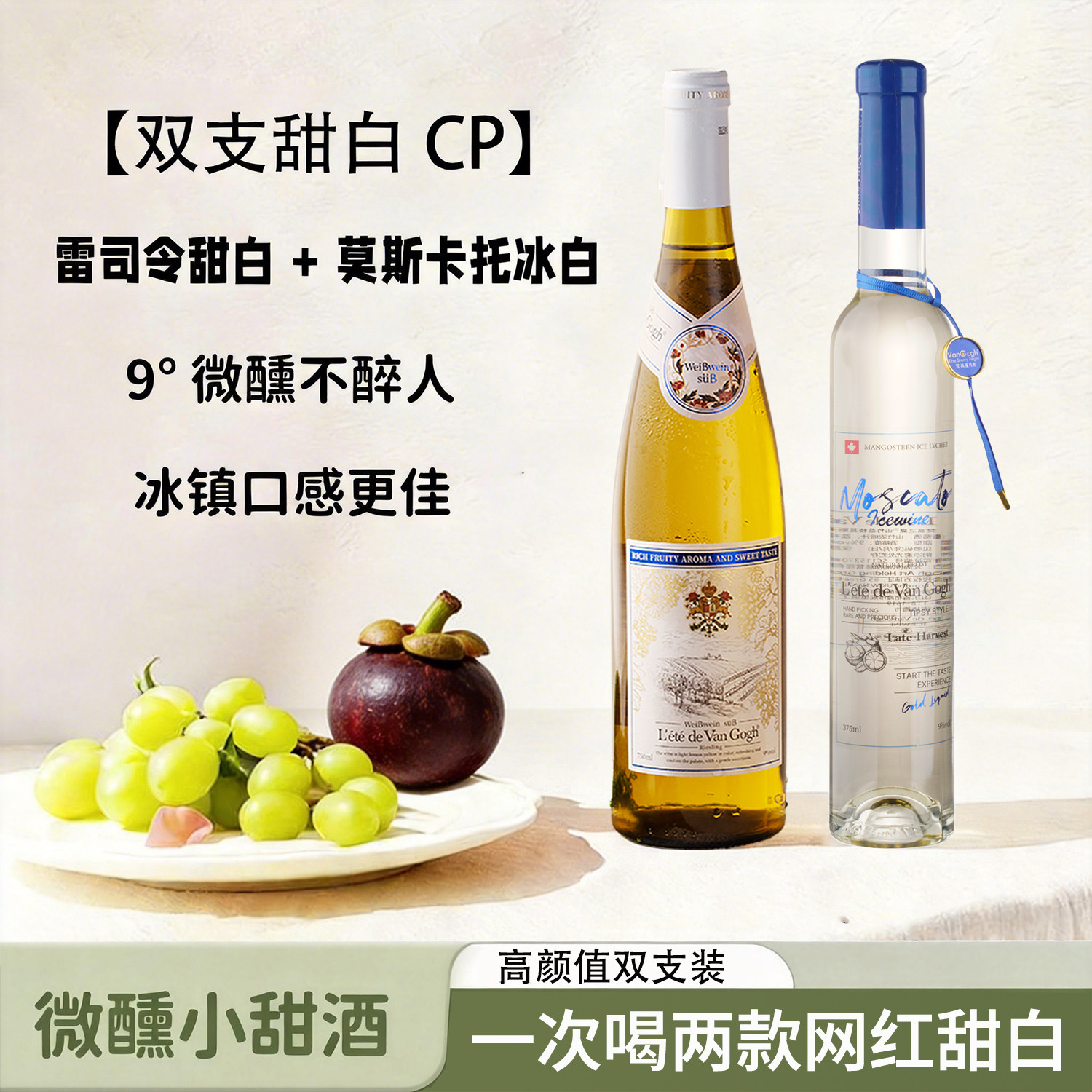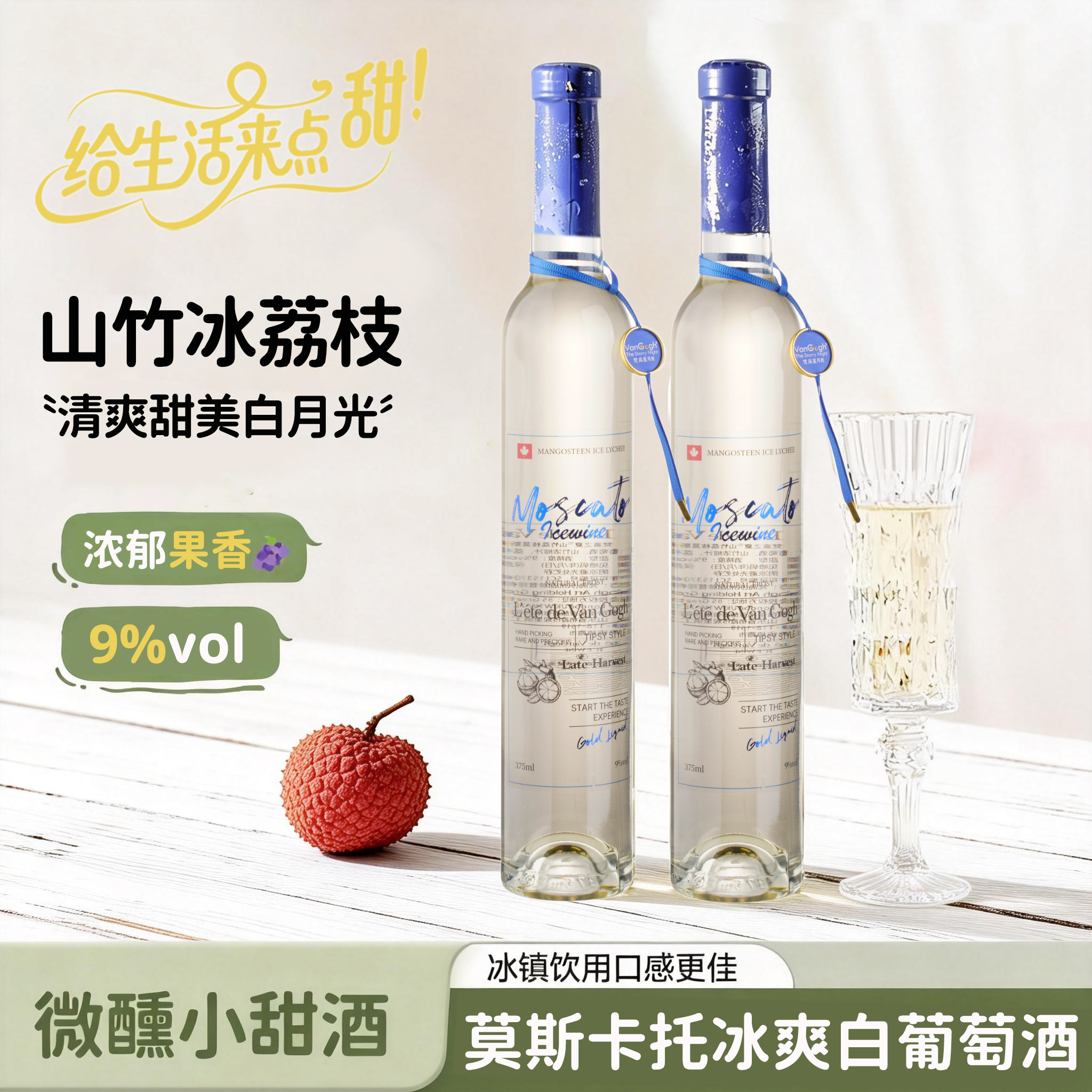 之夏山竹冰茉莉莫斯卡托冰爽白葡萄酒晚收甜白香槟果酒低度起泡酒
