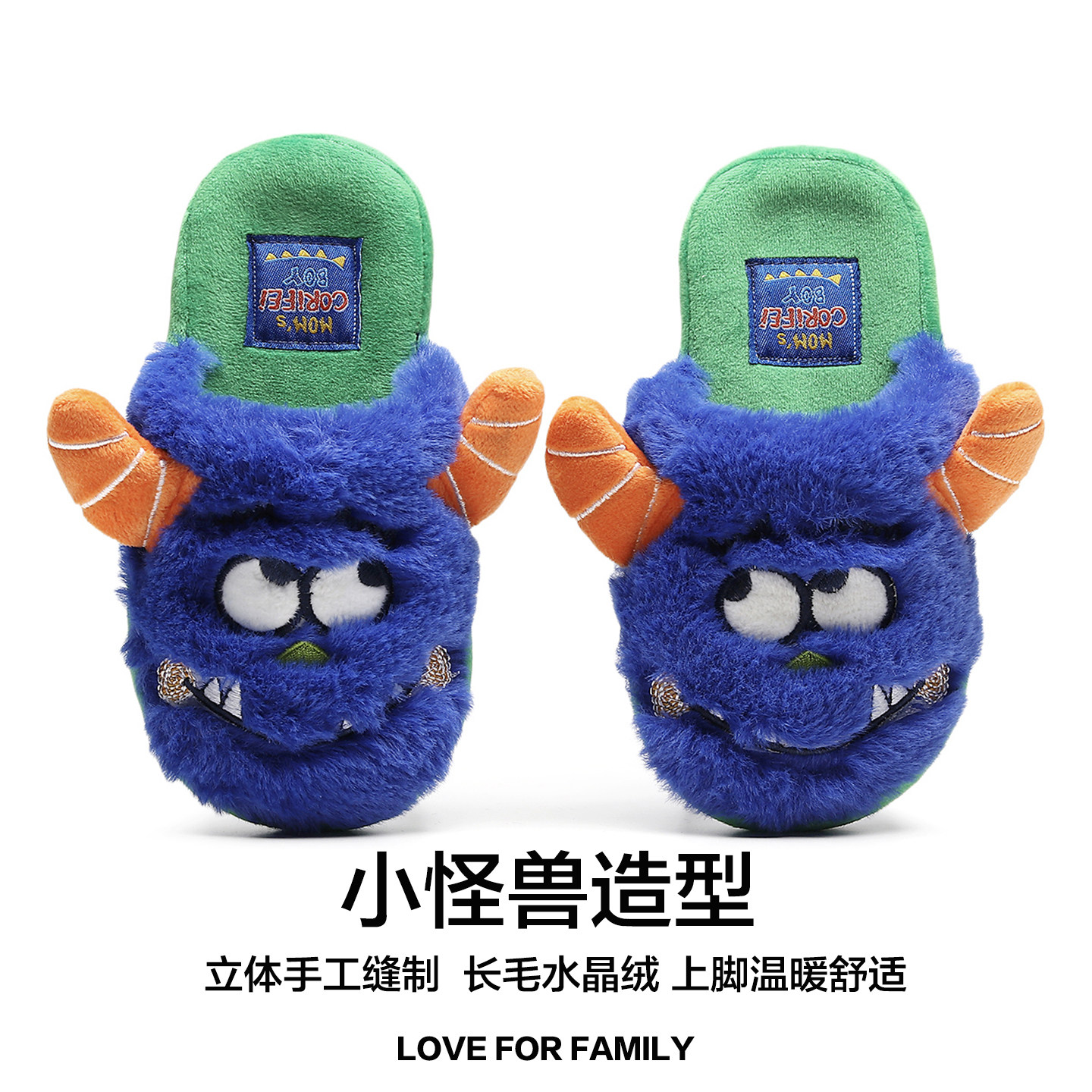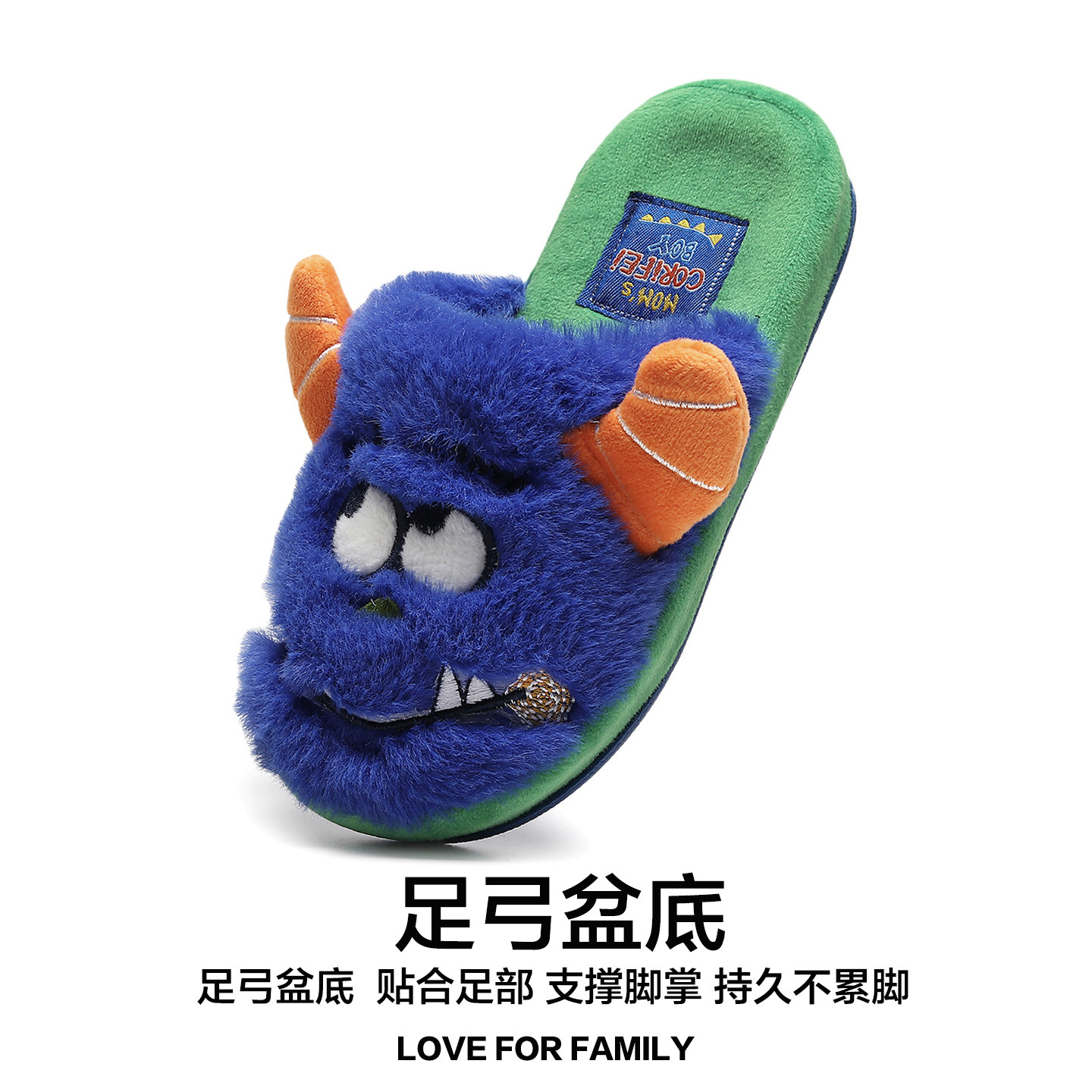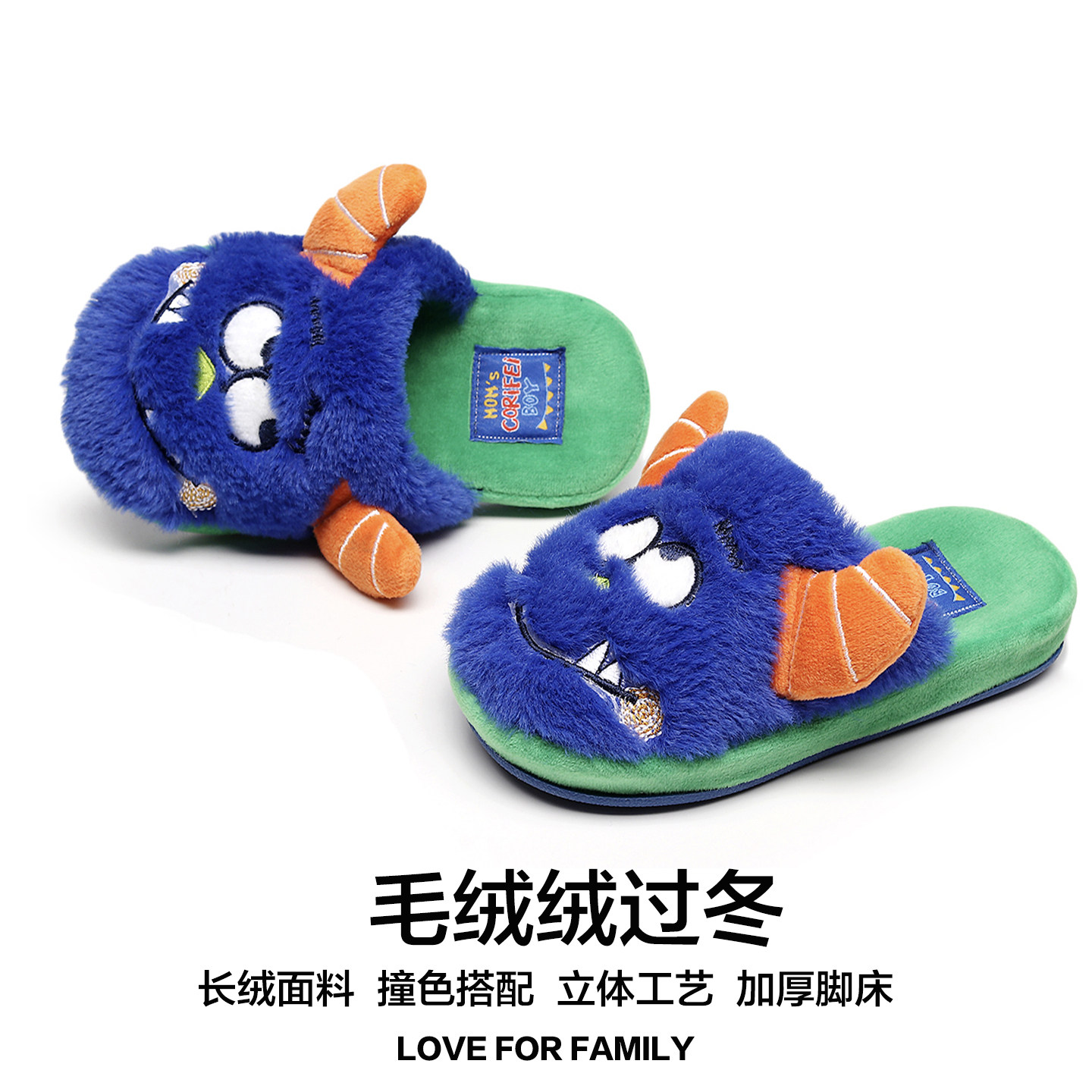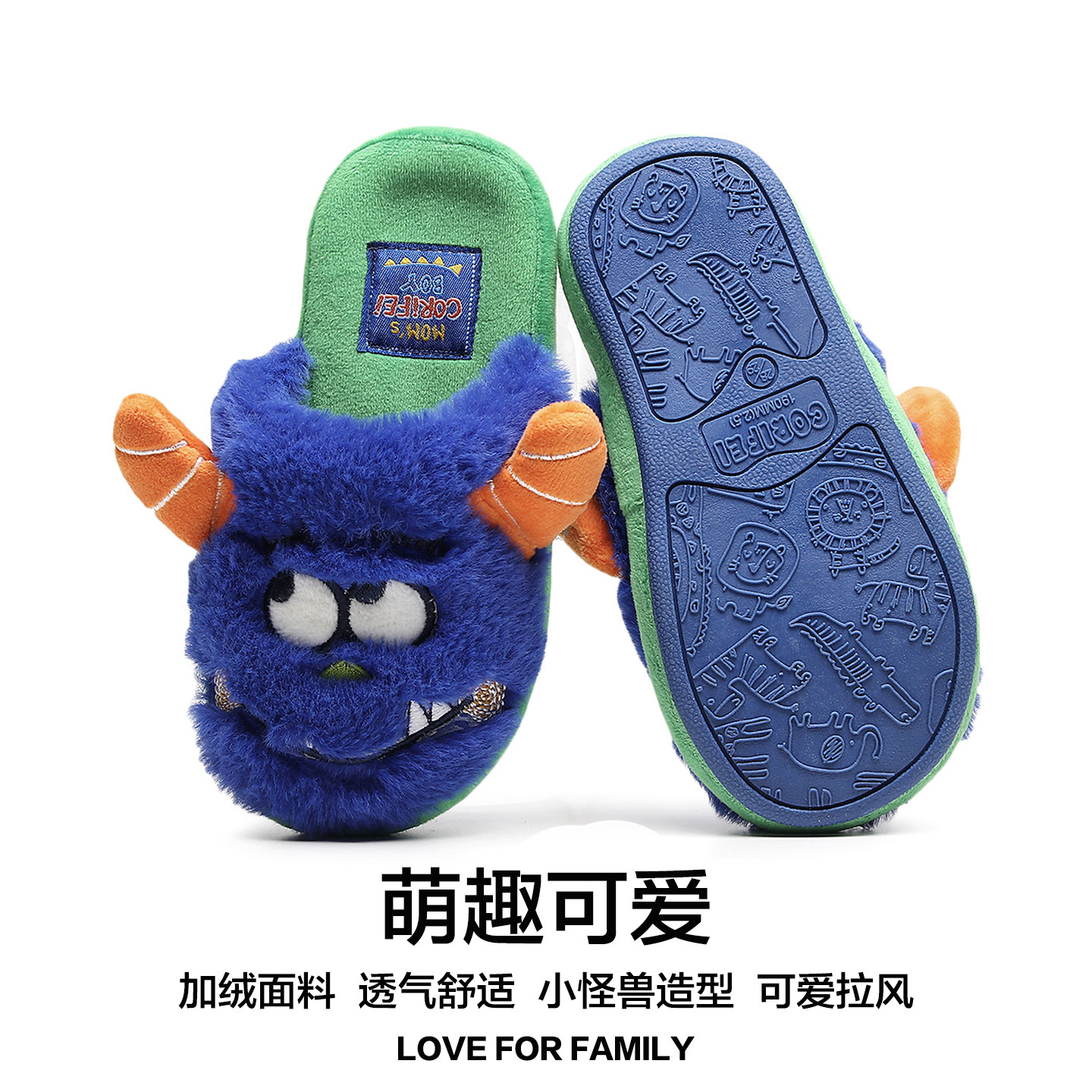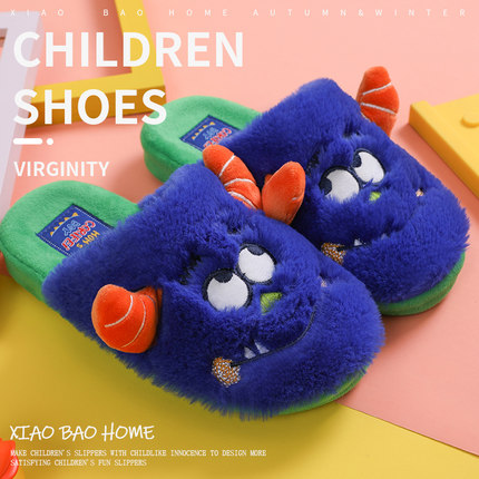 男童棉拖鞋秋冬季室内防滑大童怪兽卡通可爱家居新款保暖男孩拖鞋
