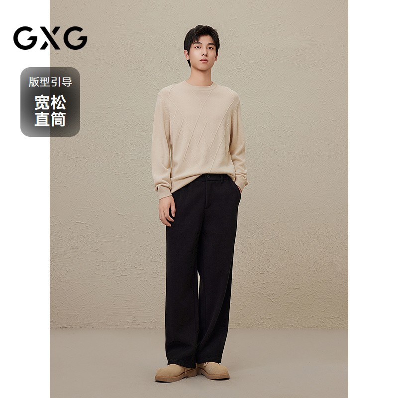 【A】2024年秋季品GXG加绒黑色百搭长裤简约直筒休闲裤男