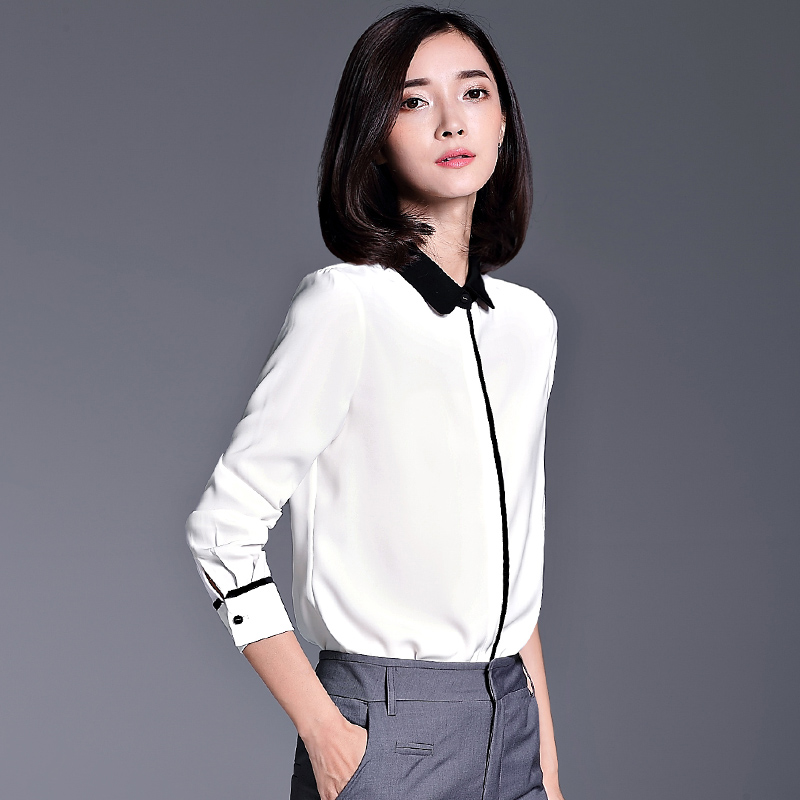 璐丝百丽白衬衫女长袖2025春秋新款娃娃领衬衣职业装女士雪纺上衣
