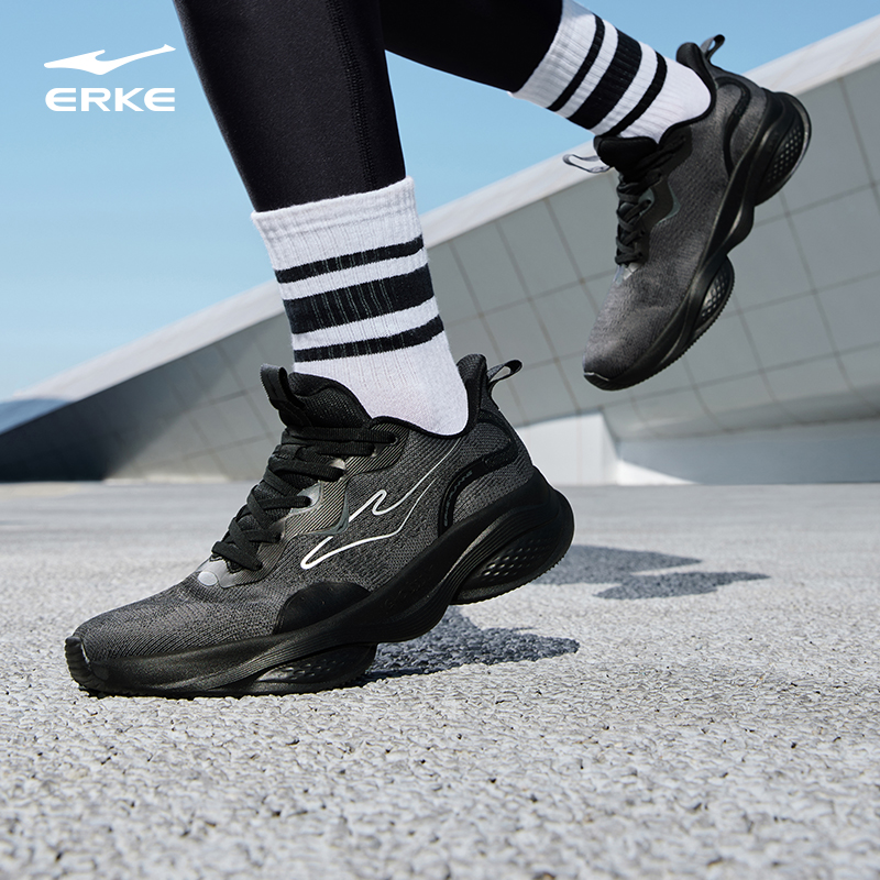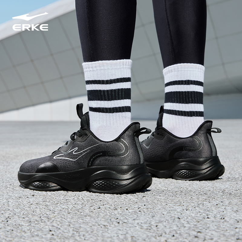 鸿星尔克啵啵弹跑步鞋男鞋冬季软底回弹运动鞋轻便耐磨黑色鞋子男