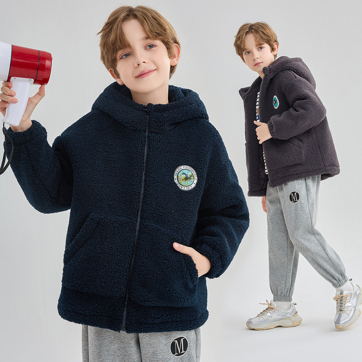 马克华菲儿童夹棉厚棉袄秋男女童羊羔绒大童加绒棉服仿羊羔毛外套