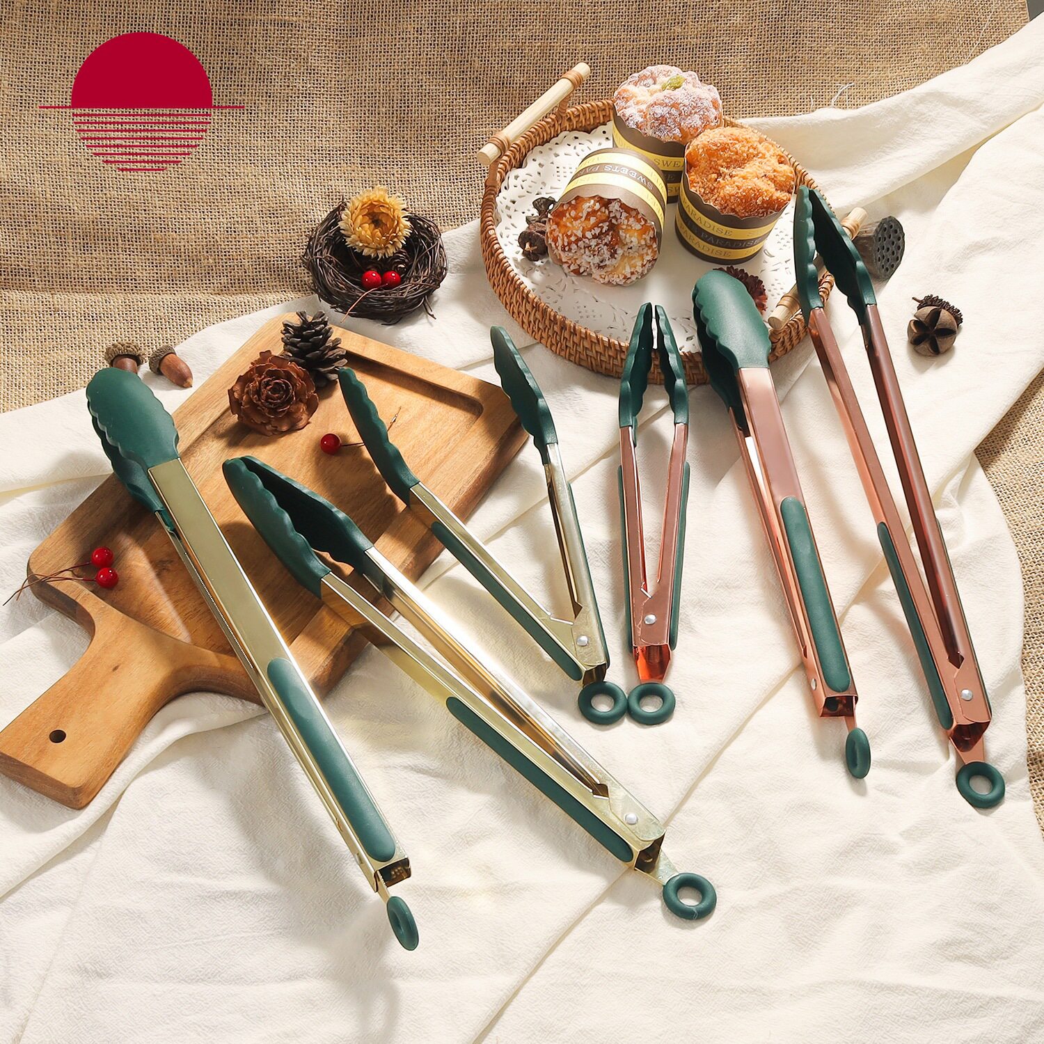 镀金新款防滑硅胶食物夹镀金9寸12寸14寸烧烤工具厨房用具烧烤夹