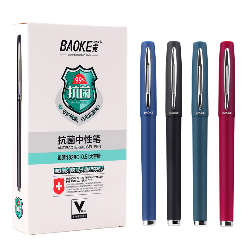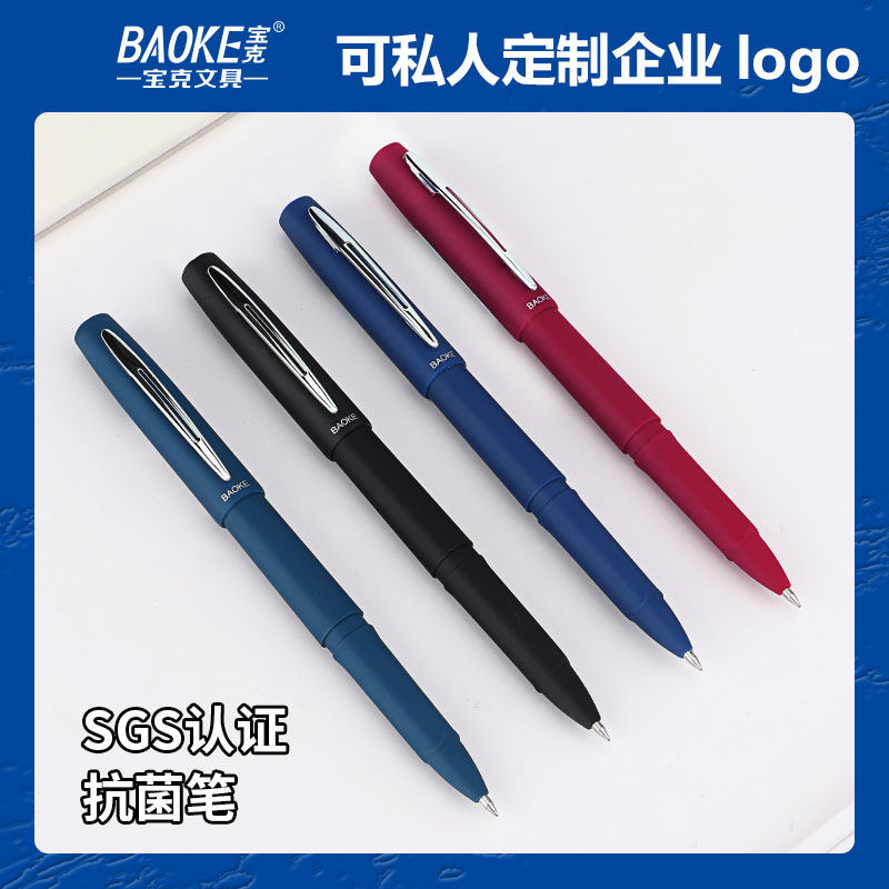 【免定制费】宝克可定制中性笔1828A网红抗菌签字笔蓝黑色大容量学生0.5mm练字子弹头红色磨砂笔办公定制