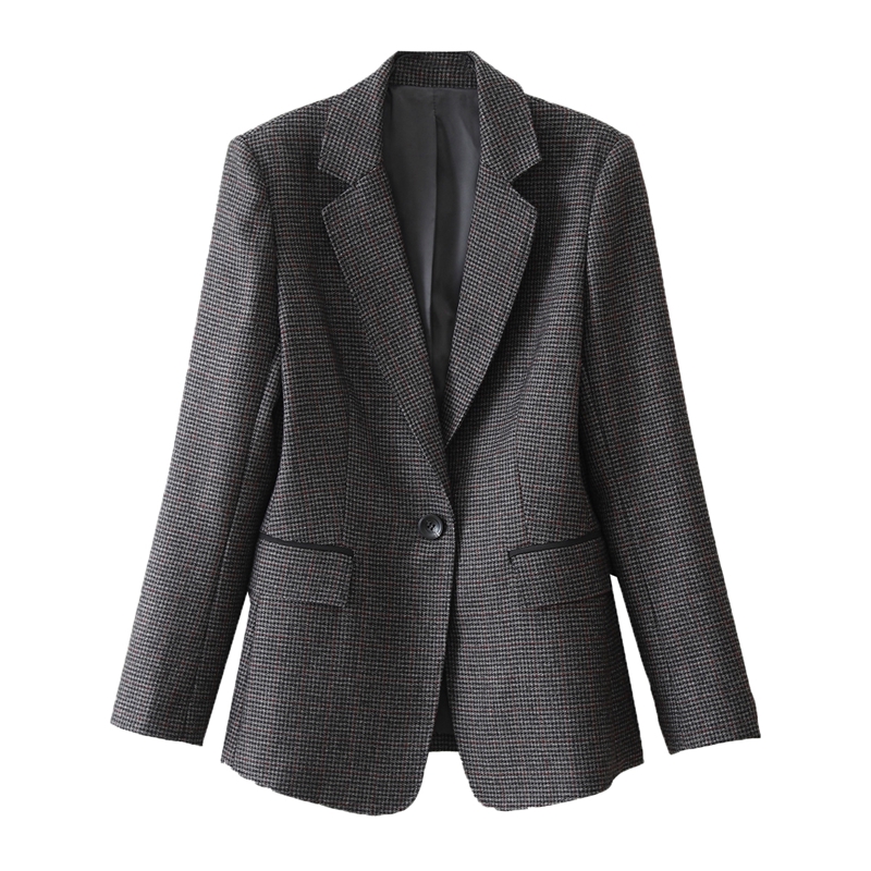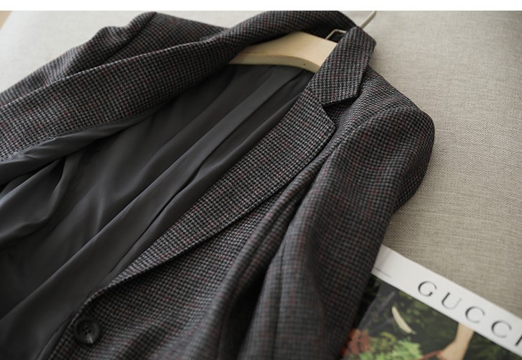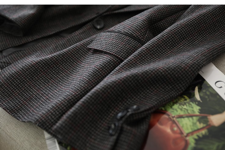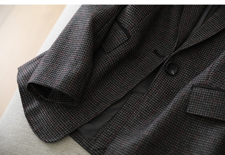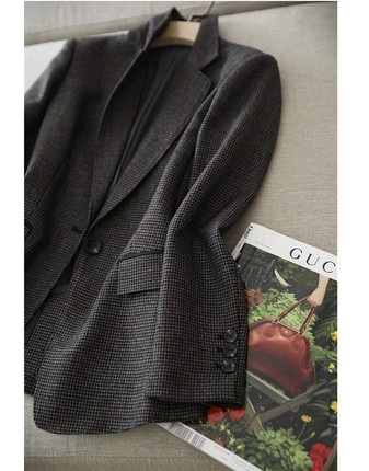 日系原单 高端格调薄羊毛西装 显瘦小格子提花修身立体剪裁小西服