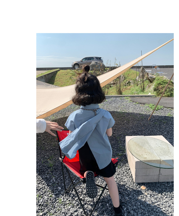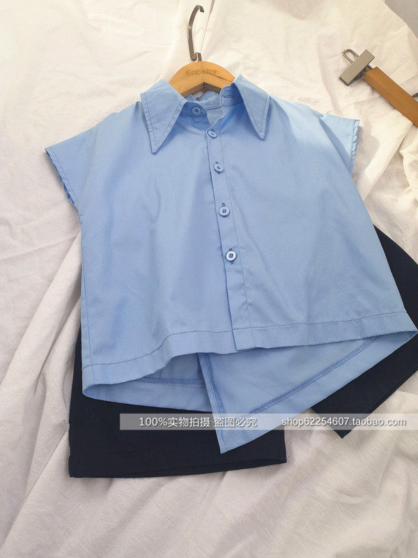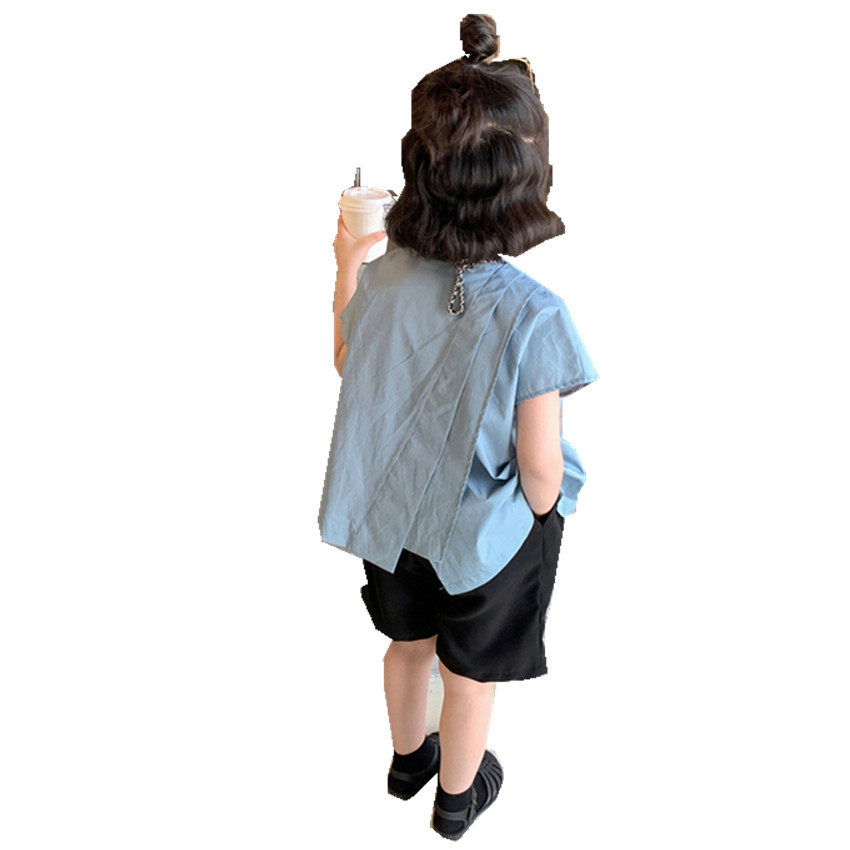 女童夏装学院风衬衫五分裤套装