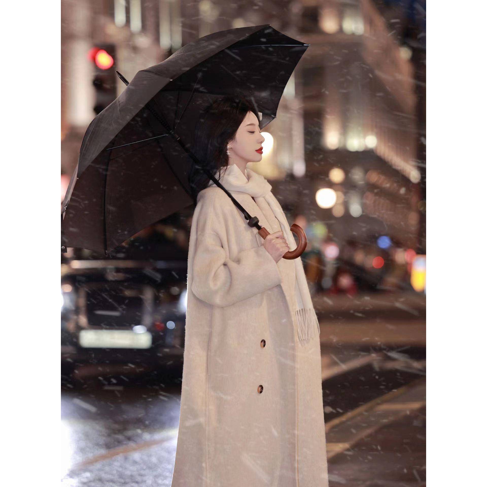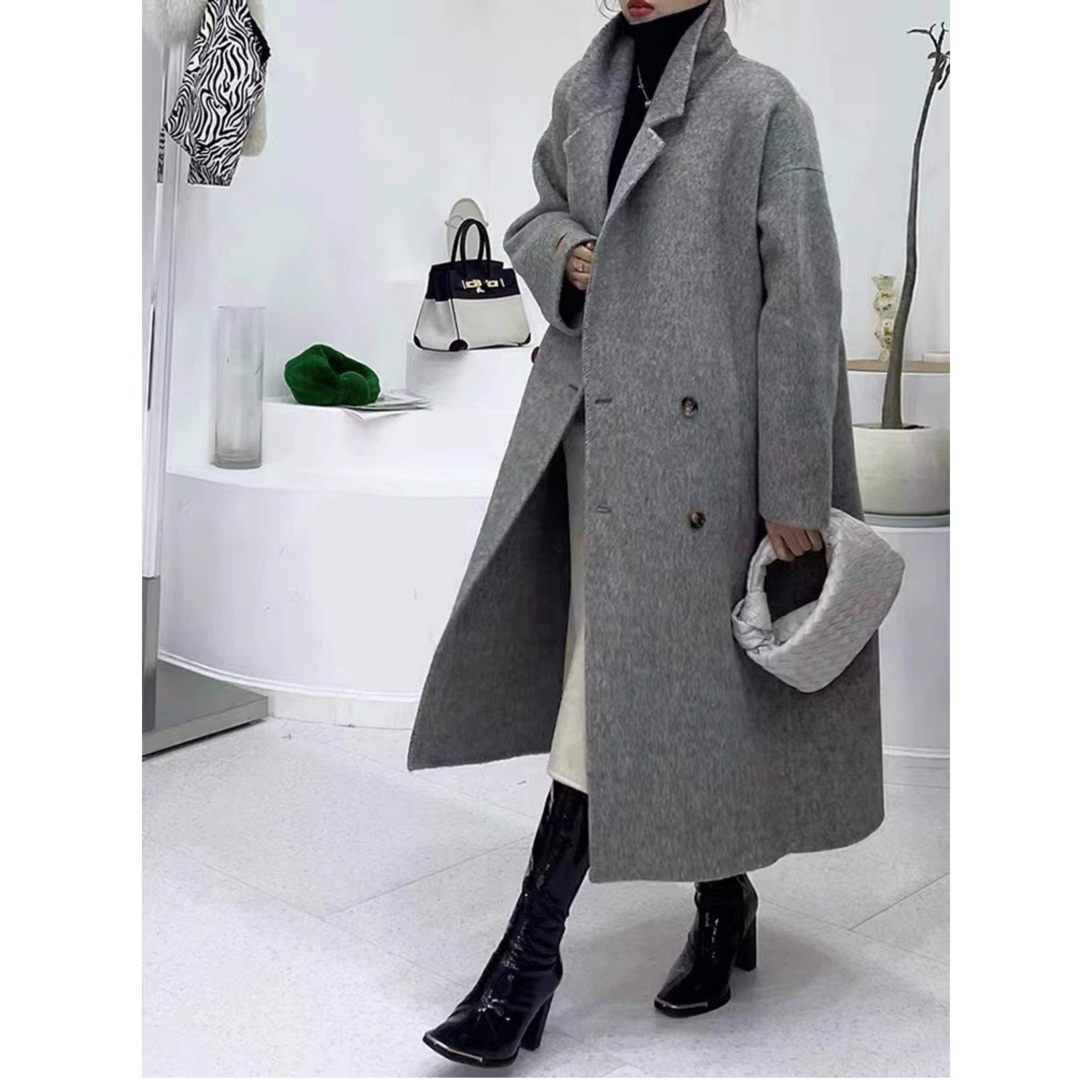 2024年秋冬新款双面呢羊绒羊毛大衣女中长款宽松韩版茧型毛呢外套