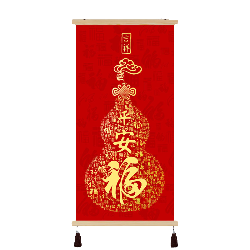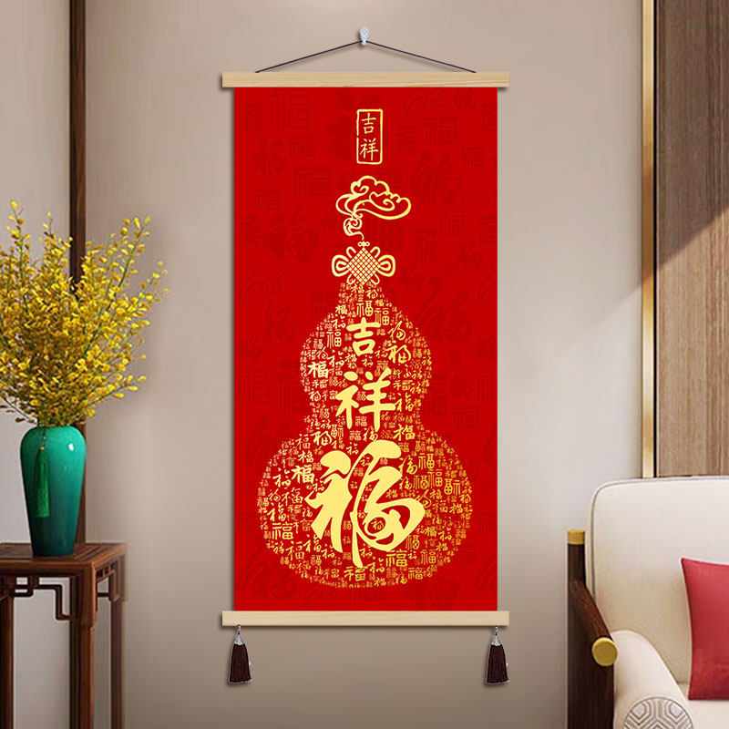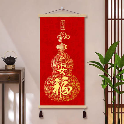 中式平安福字入户玄关走廊装饰画葫芦喜庆卷轴墙画客厅背景墙挂画