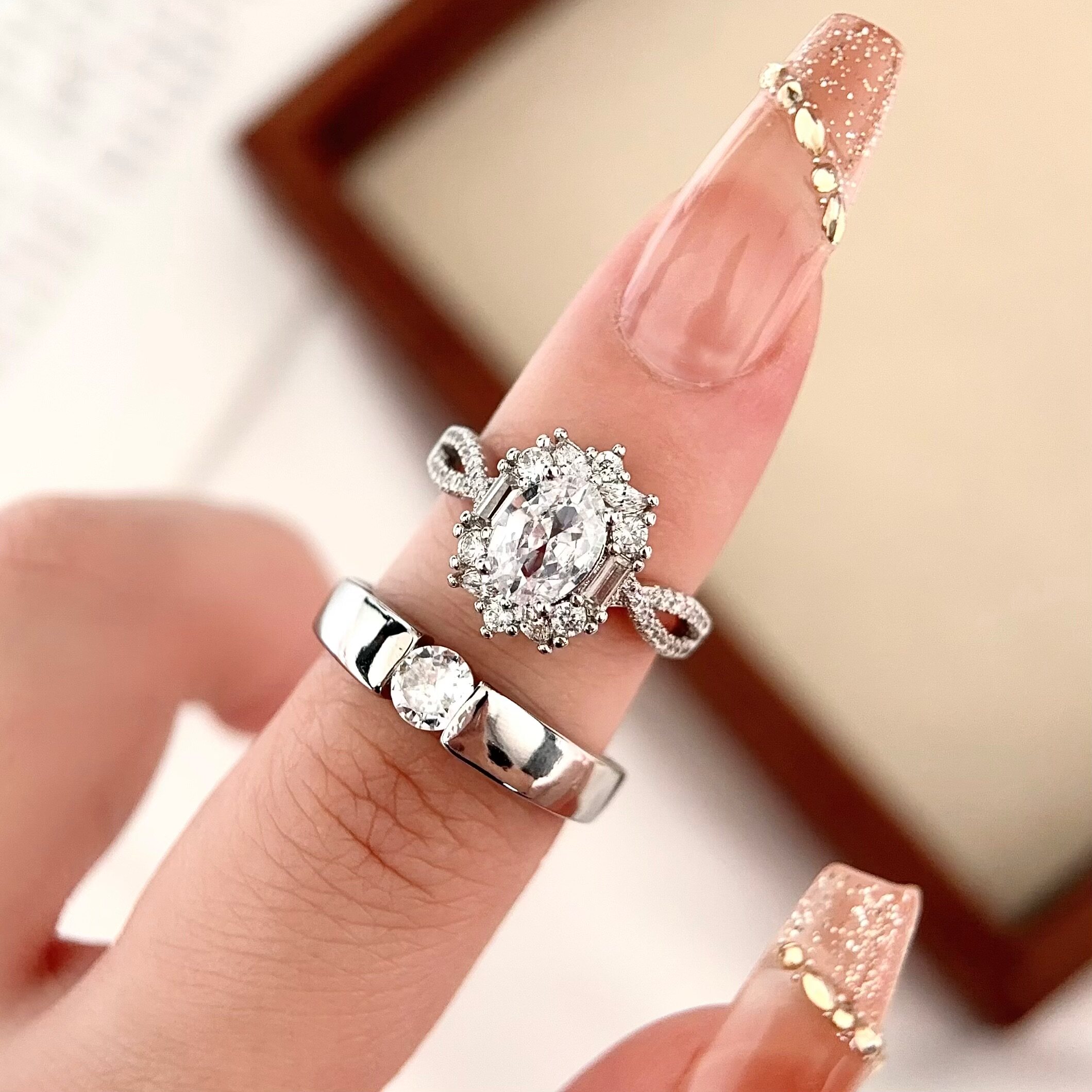 结婚仿真情侣对戒莫桑石椭圆鸽子蛋祖母绿假钻戒一对活口求婚道具