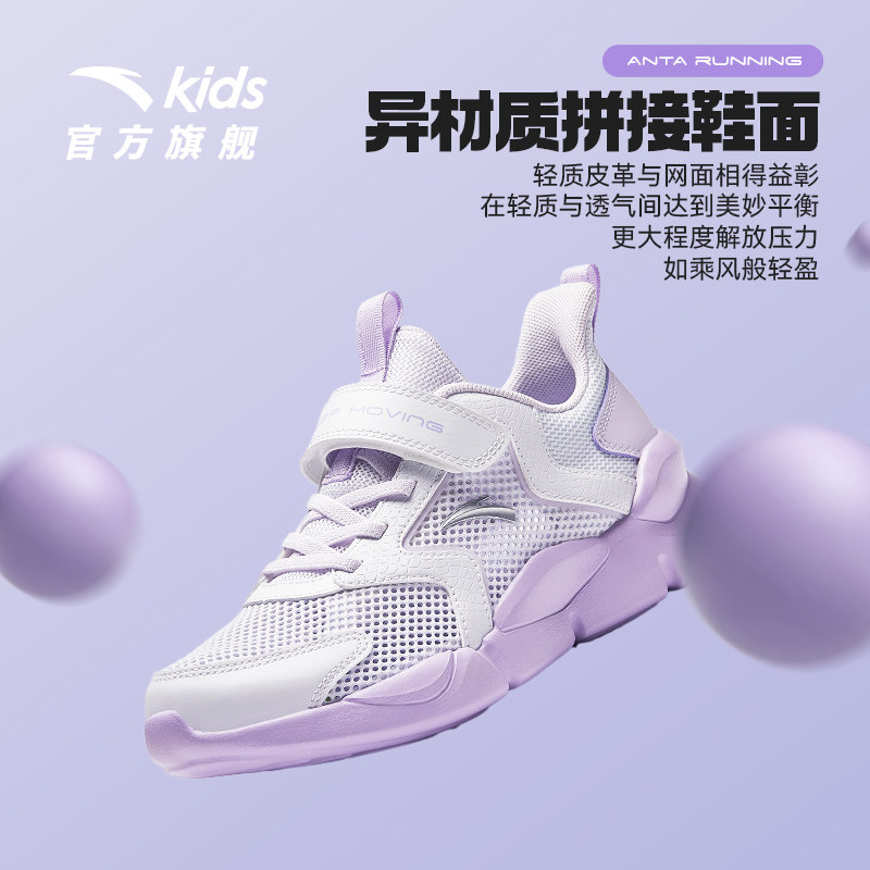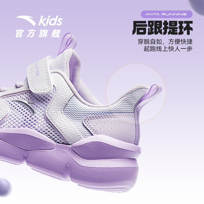 安踏儿童女童运动鞋透气2025夏季新款女大童跑鞋网面跑步鞋小白鞋